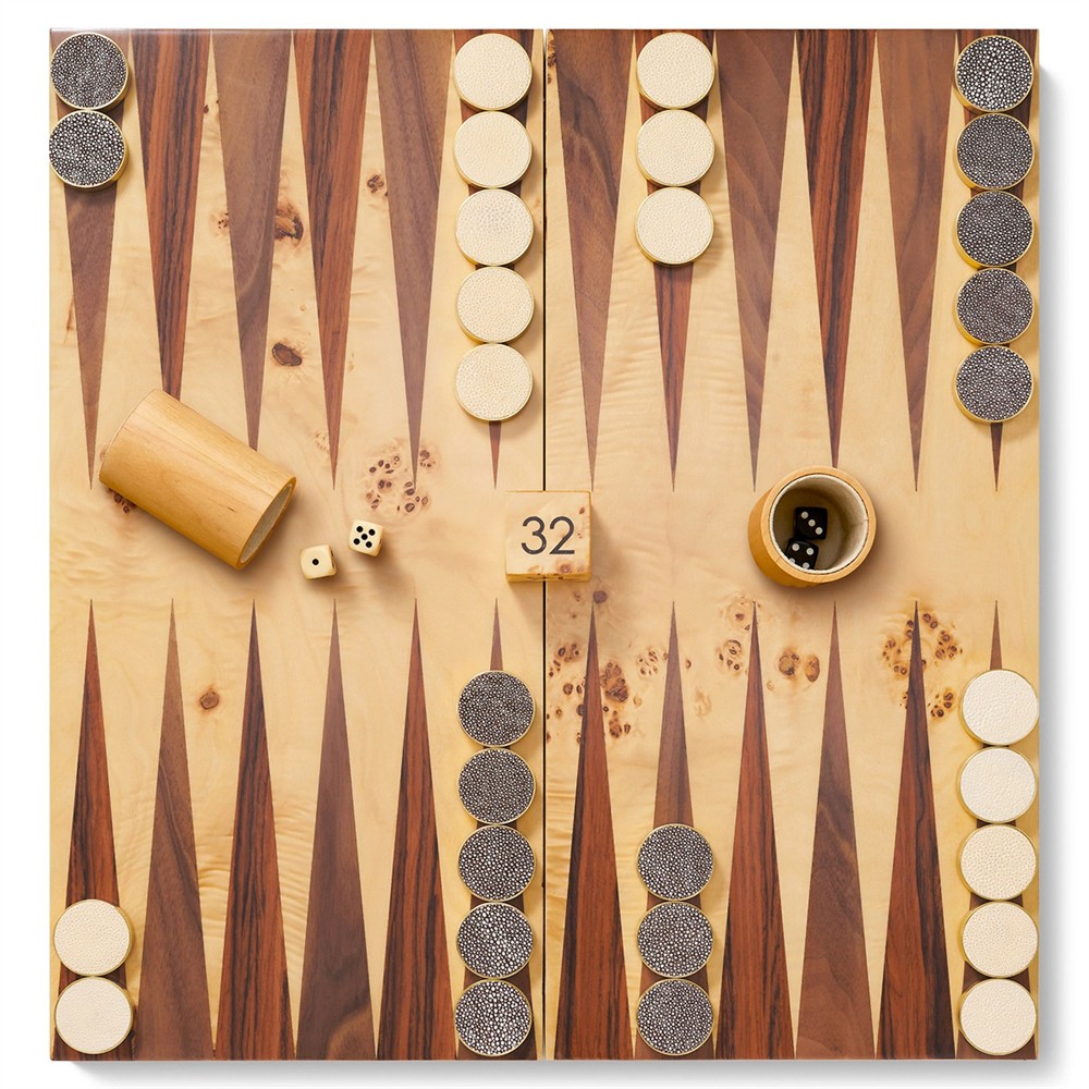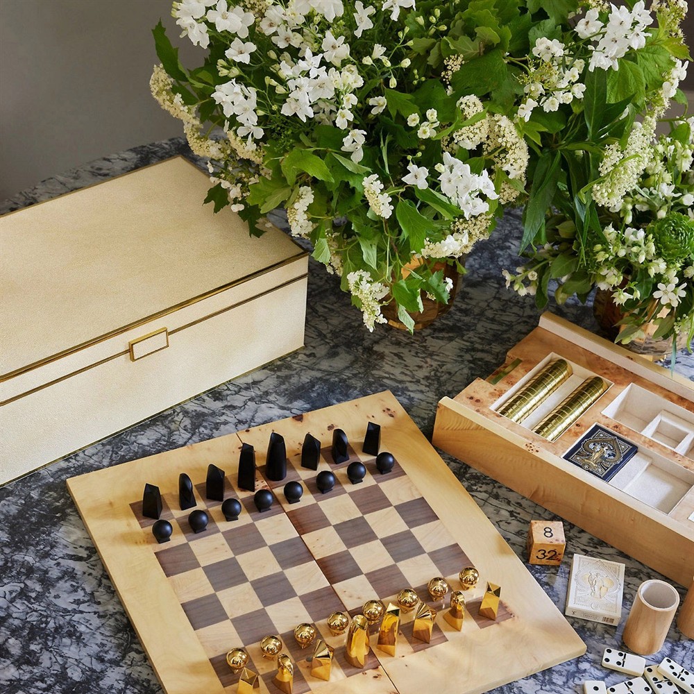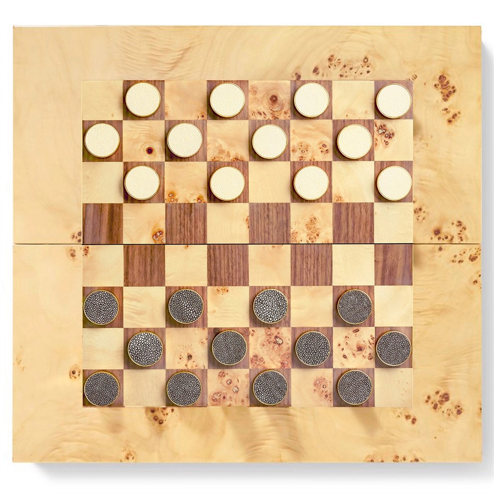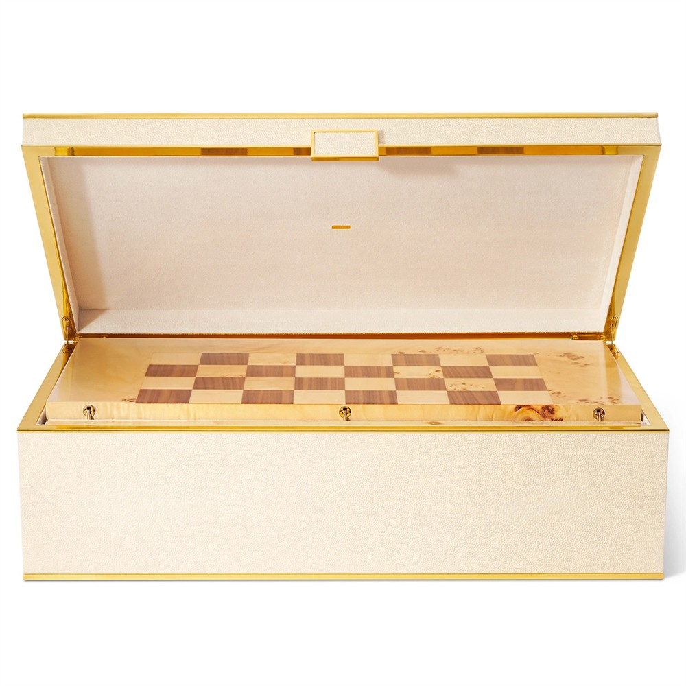 AERIN Updated Traditional Cream Shagreen Burl Wood 5 in 1 Game Set