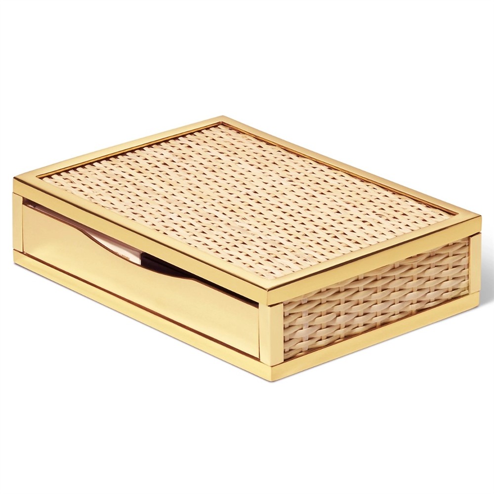 • Pigeon and Poodle Hanford Natural Woven Raffia Saddle Leather Trim Card Box|Kathy Kuo Home