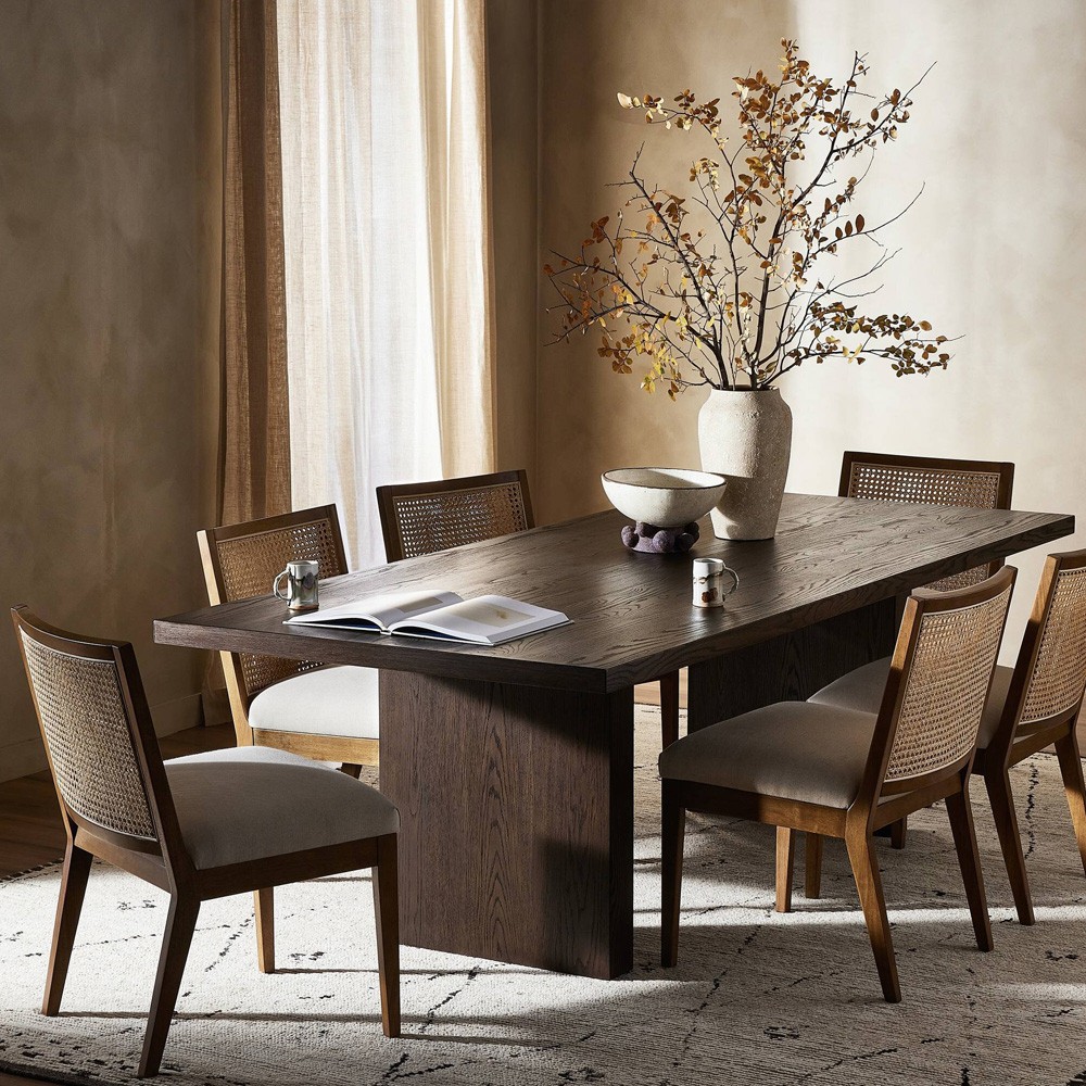 • Mako Coastal Beach Brown Woven Rattan Rectangular Dining Table - 72"|Kathy Kuo Home