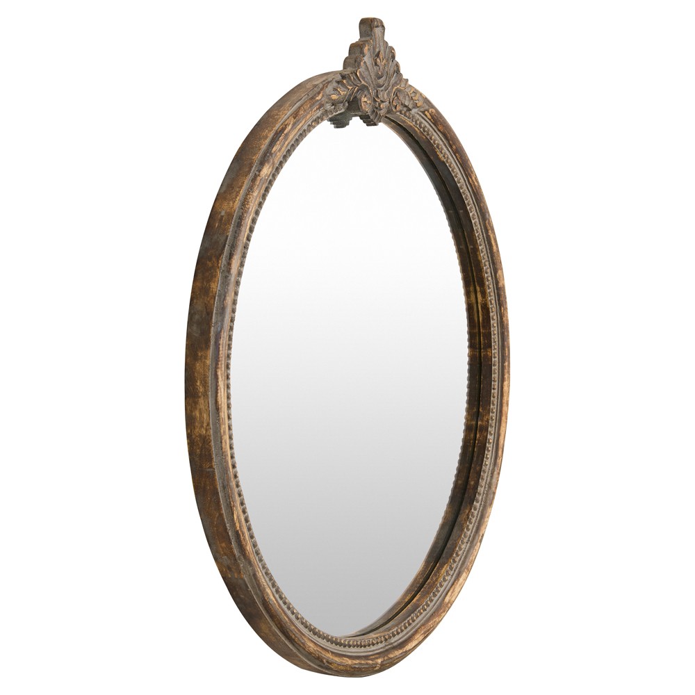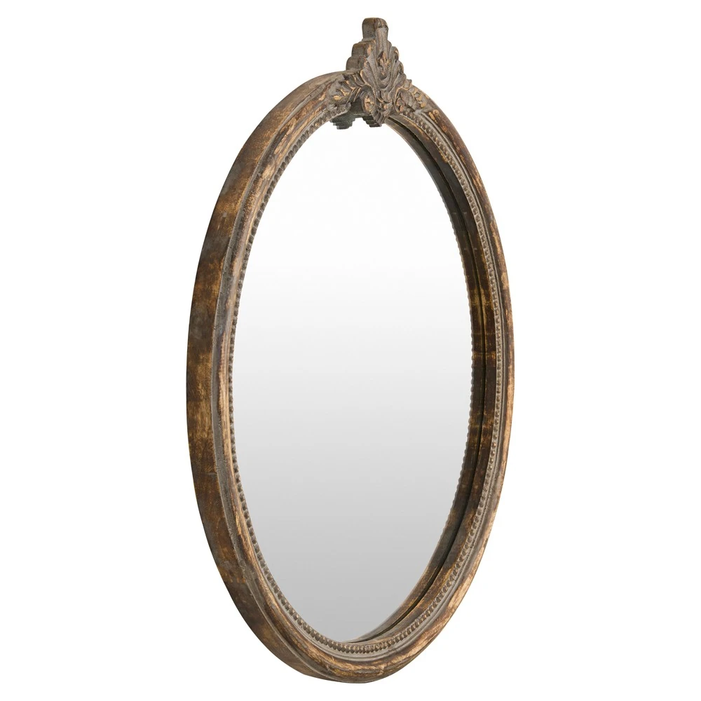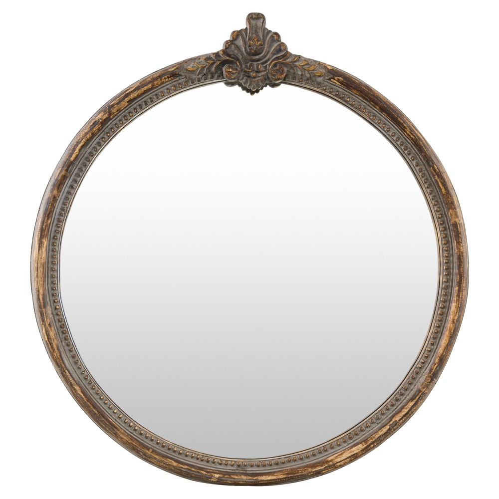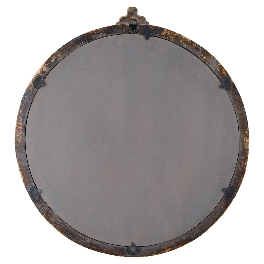 Quince Updated Traditional Antique Brown Mango Wood Round Wall Mirror