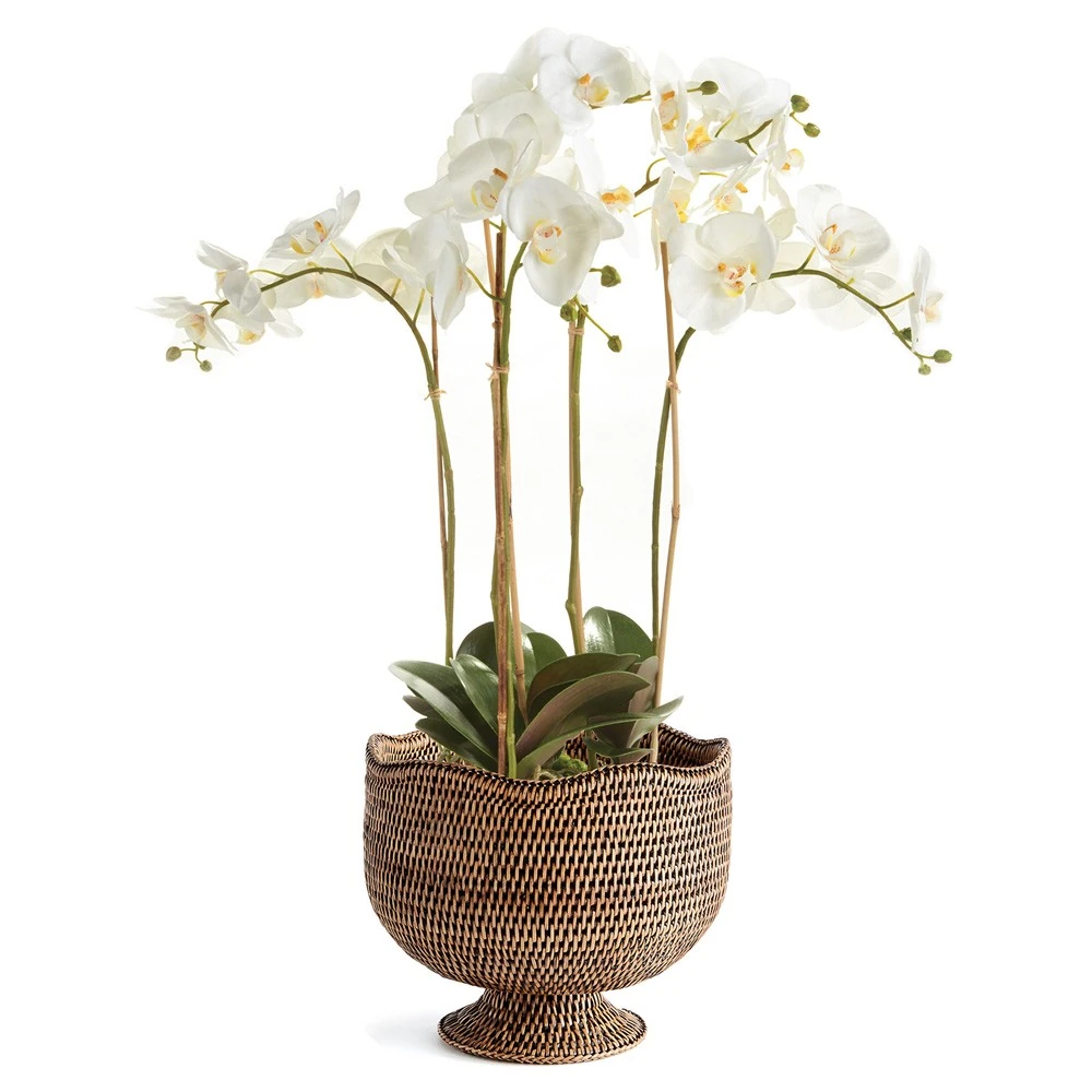 • Hollis Updated Traditional Whitewash Rattan Footed Scalloped Planter|Kathy Kuo Home