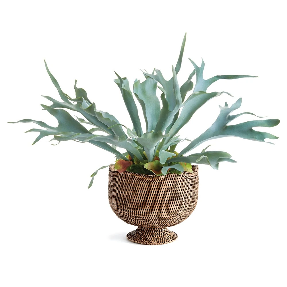 • Hollis Updated Traditional Greywash Rattan Footed Scalloped Planter|Kathy Kuo Home