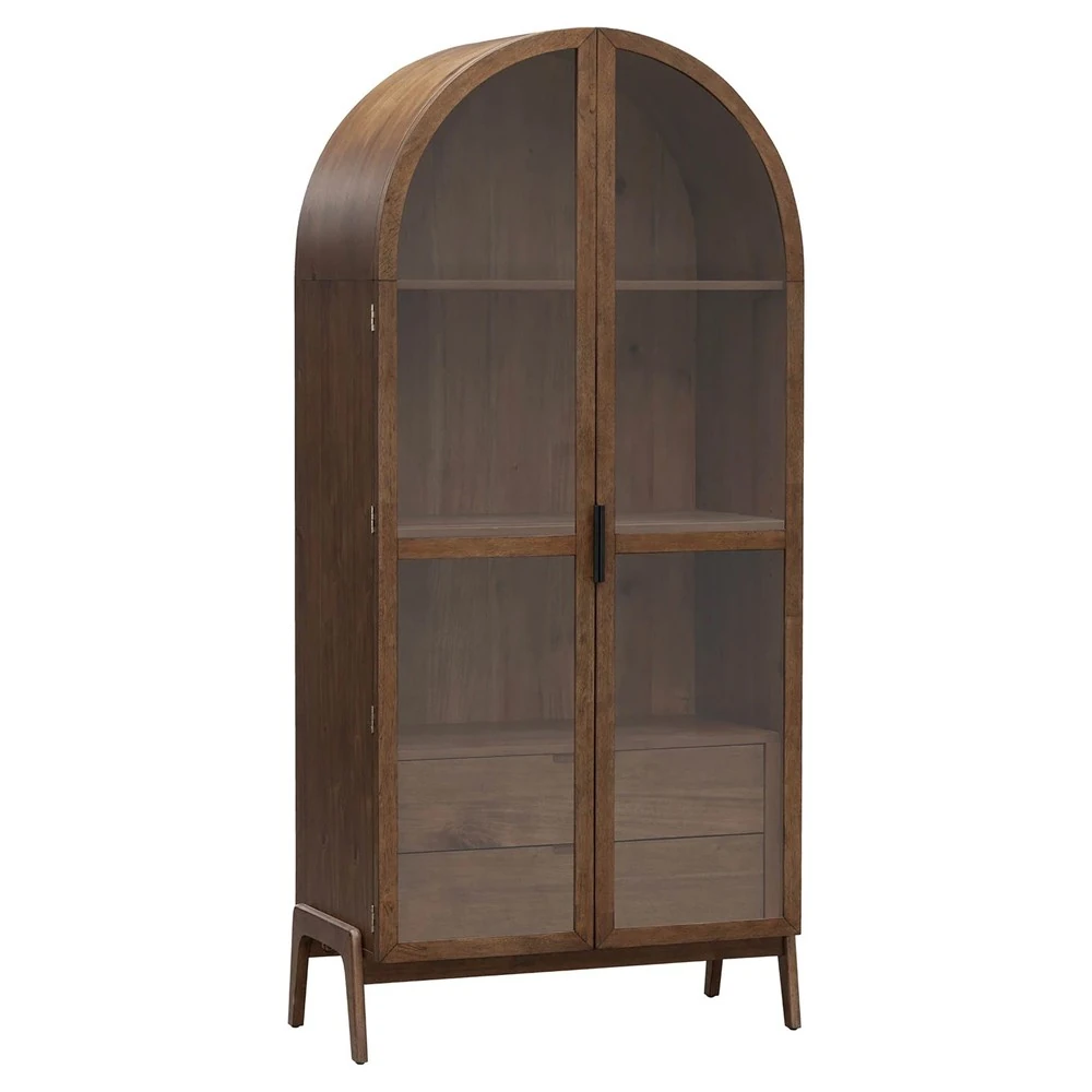 Charles Modern Classic Natural Brown Wood Arched Display Cabinet