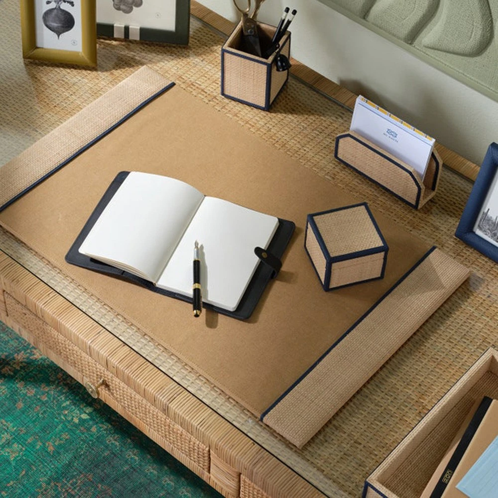 Pigeon and Poodle Hanford Natural Raffia Saddle Leather 4 Piece Letter Tray Set