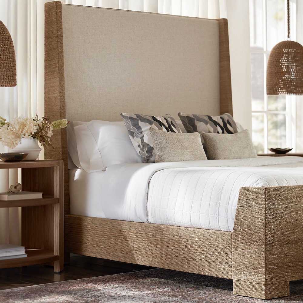 Palecek Woodside Coastal Beach Natural Brown Woven Rope Sleigh Bed - Queen