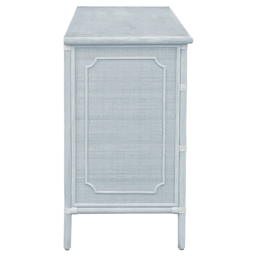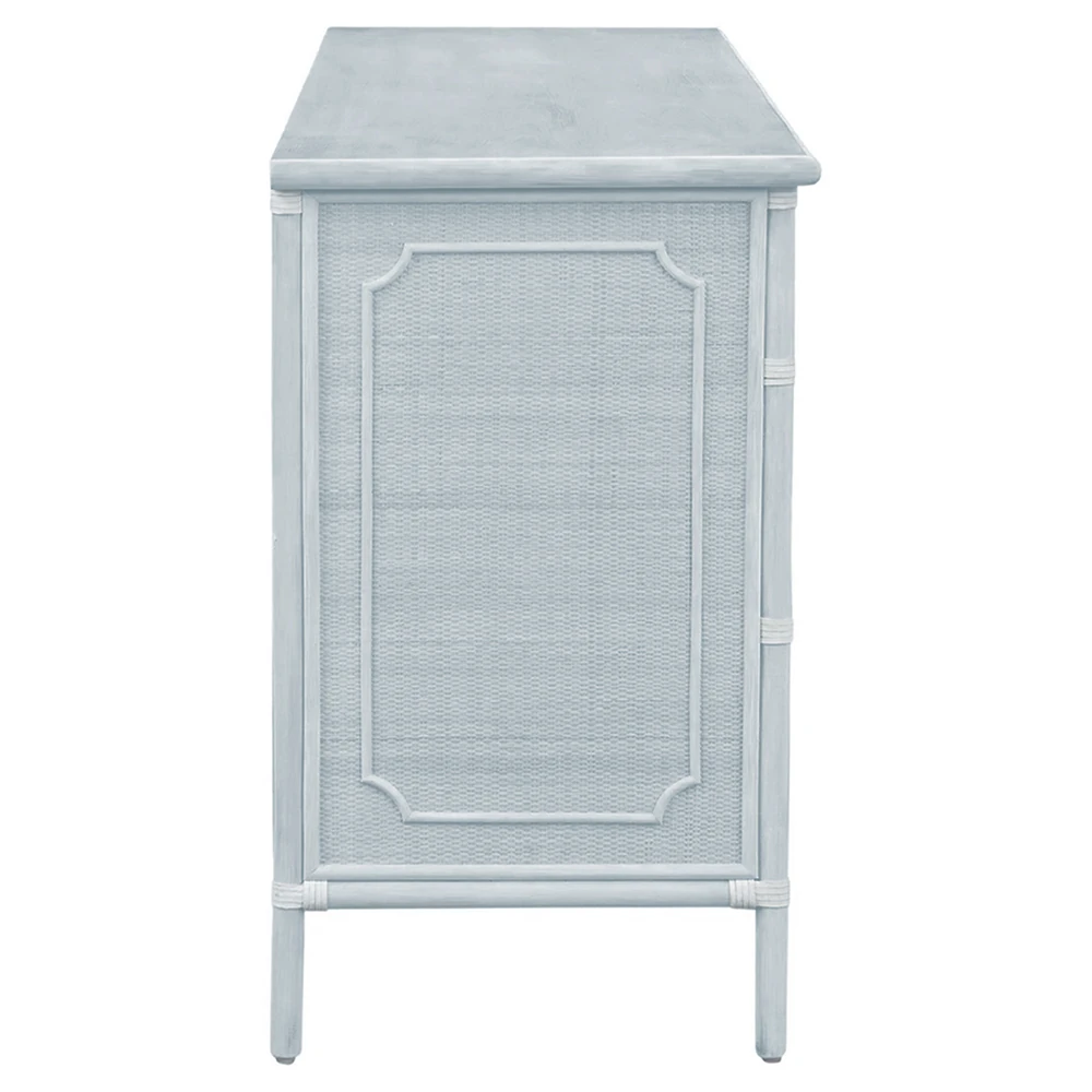 Ava Coastal Beach Light Blue Woven Rattan Long Dresser