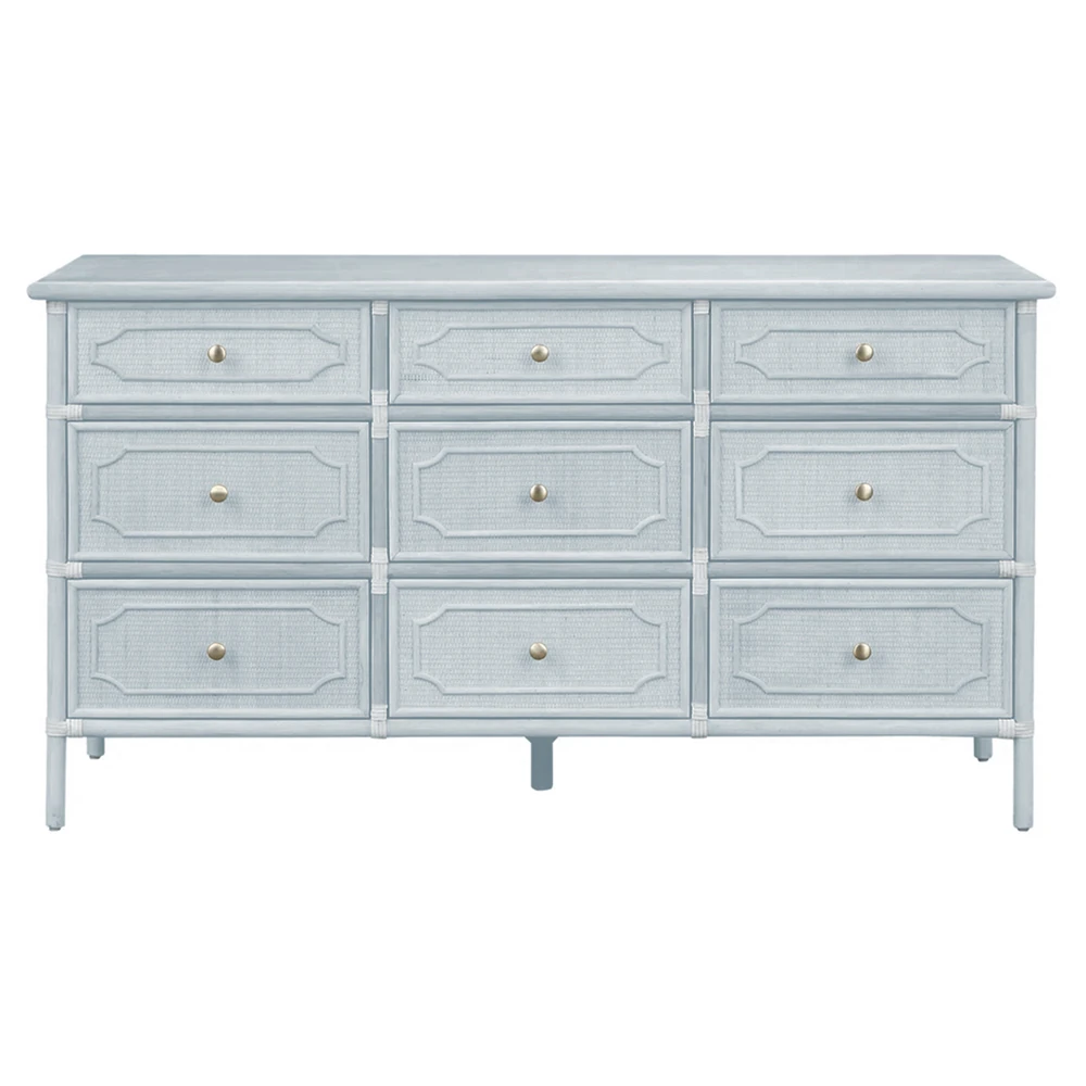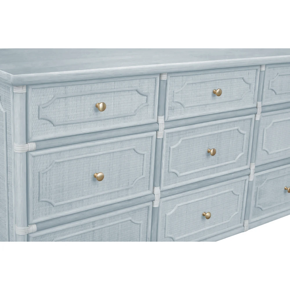 • Bella Coastal Beach Blue Rattan Wood Dresser|Kathy Kuo Home