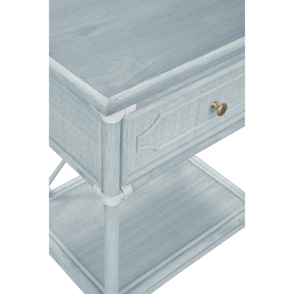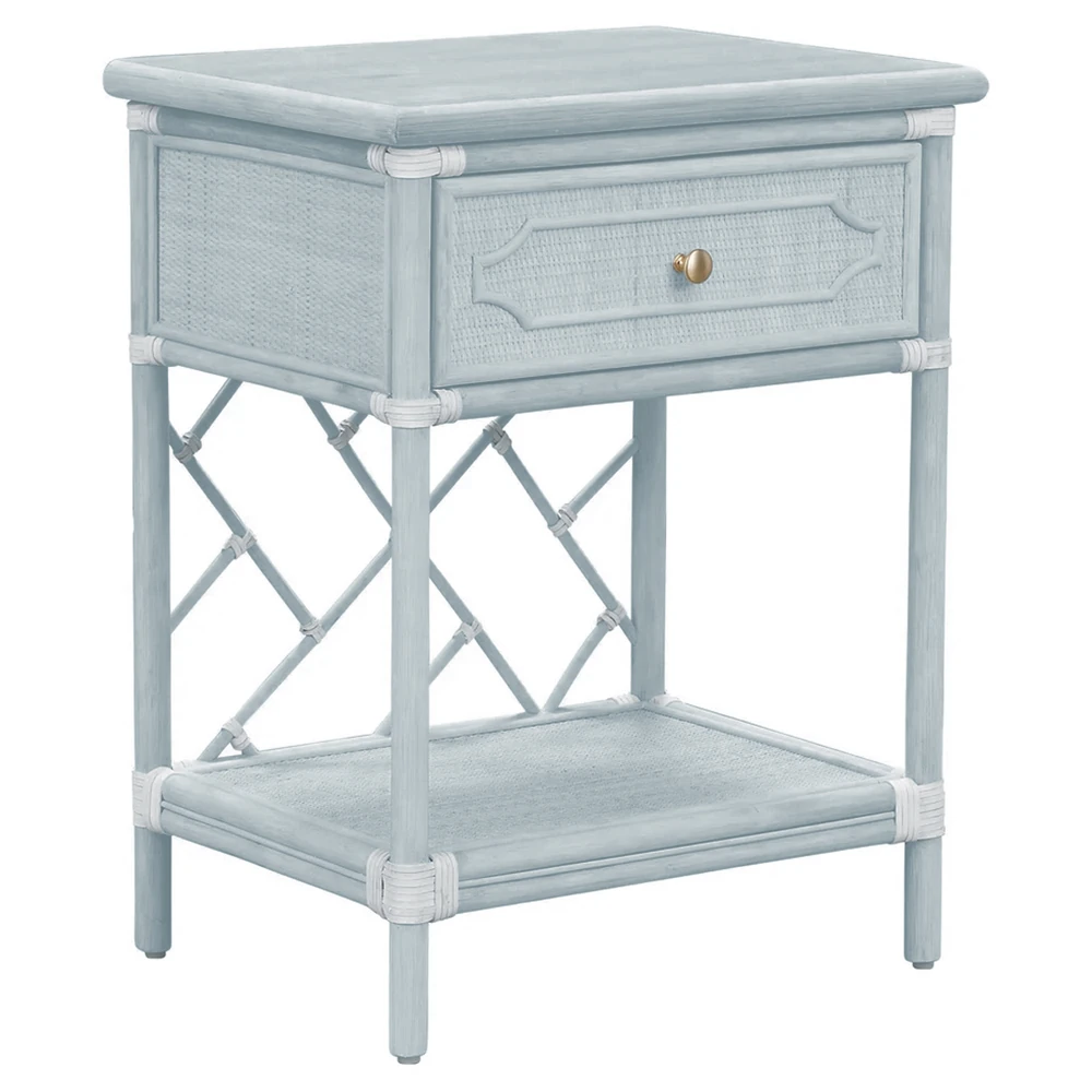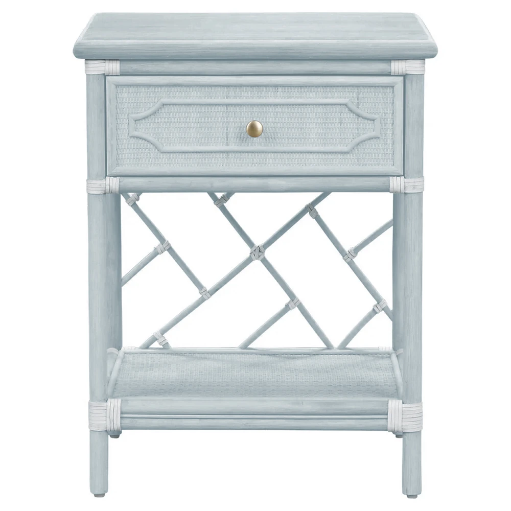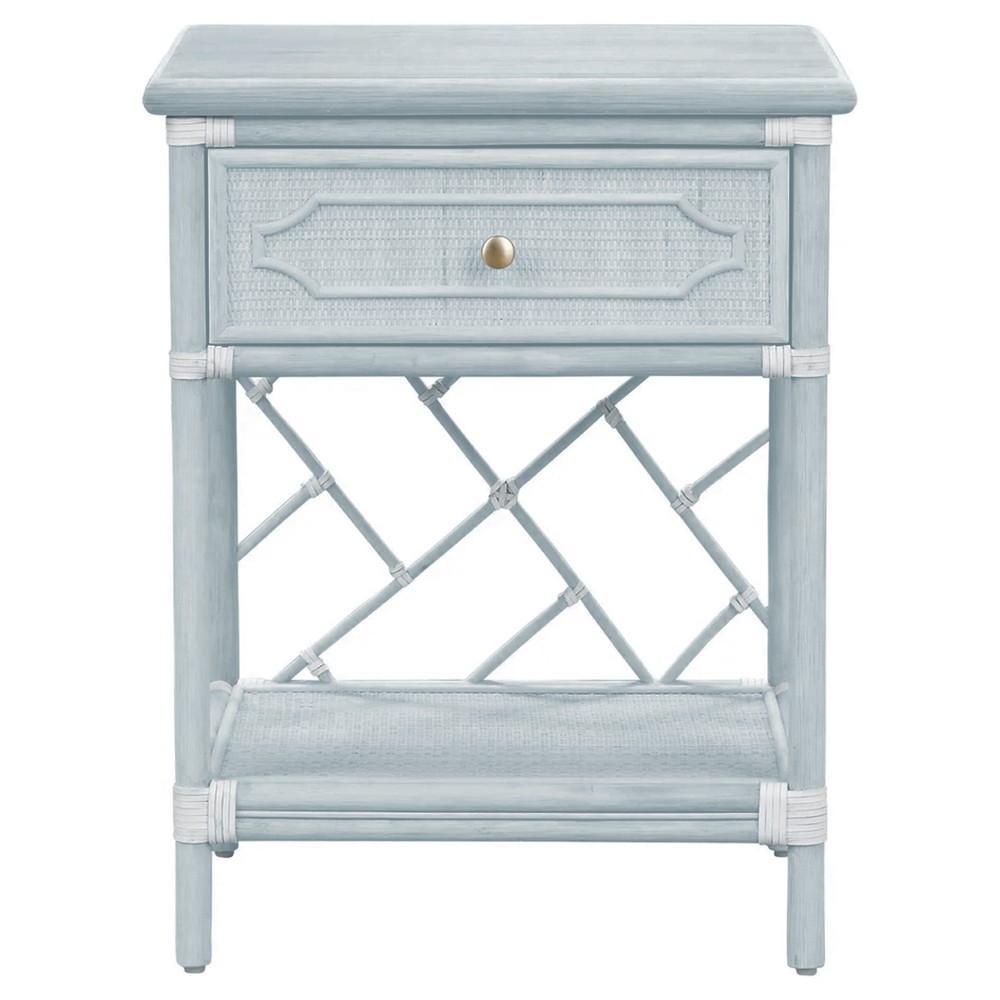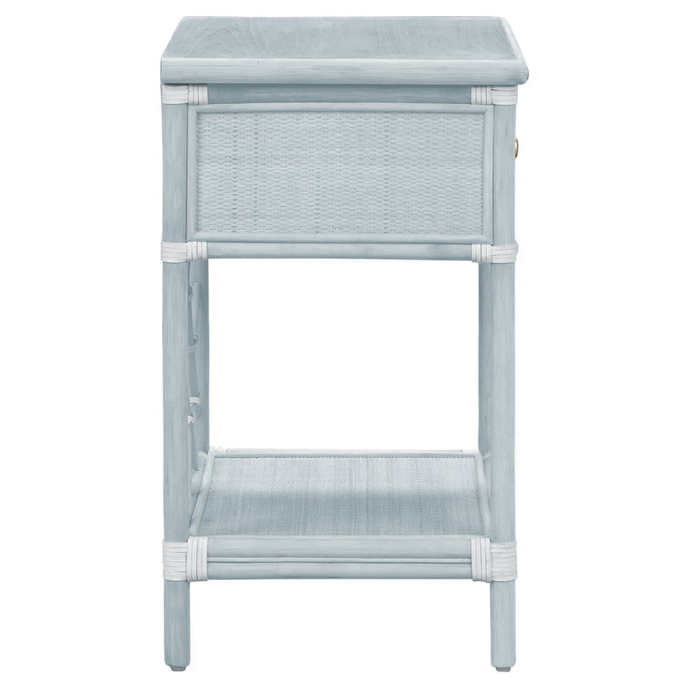 Ava Coastal Beach Light Blue Woven Rattan Nightstand