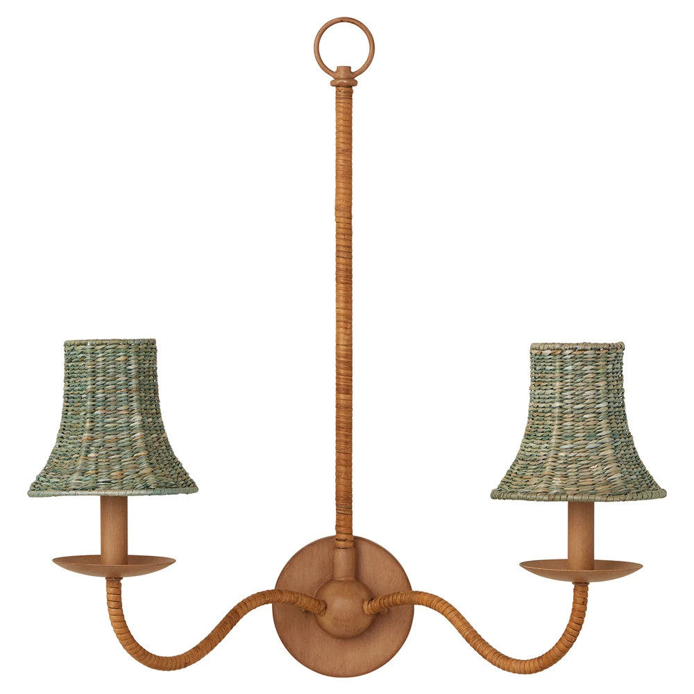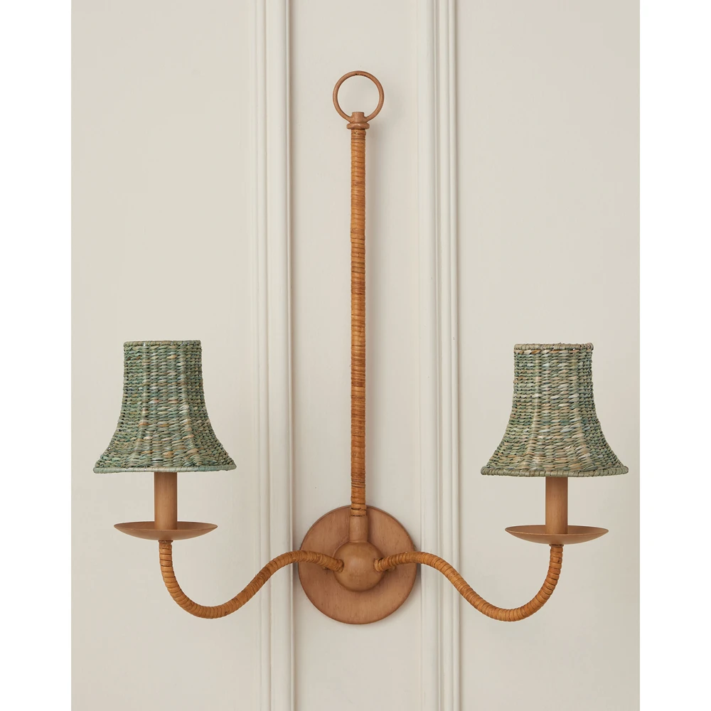 Aelle Coastal Teal Green Seagrass Bell Shade Double Armed Sconce