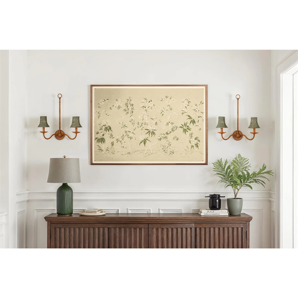 • Polly Coastal Beach Brown Rattan Shade Natural Brass Sconce|Kathy Kuo Home