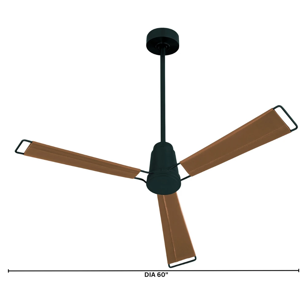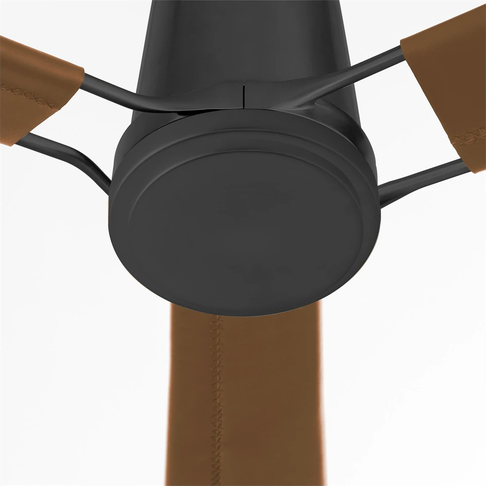 Adelaide Modern Brown Leather Blades Matte Black Steel Ceiling Fan - 60"