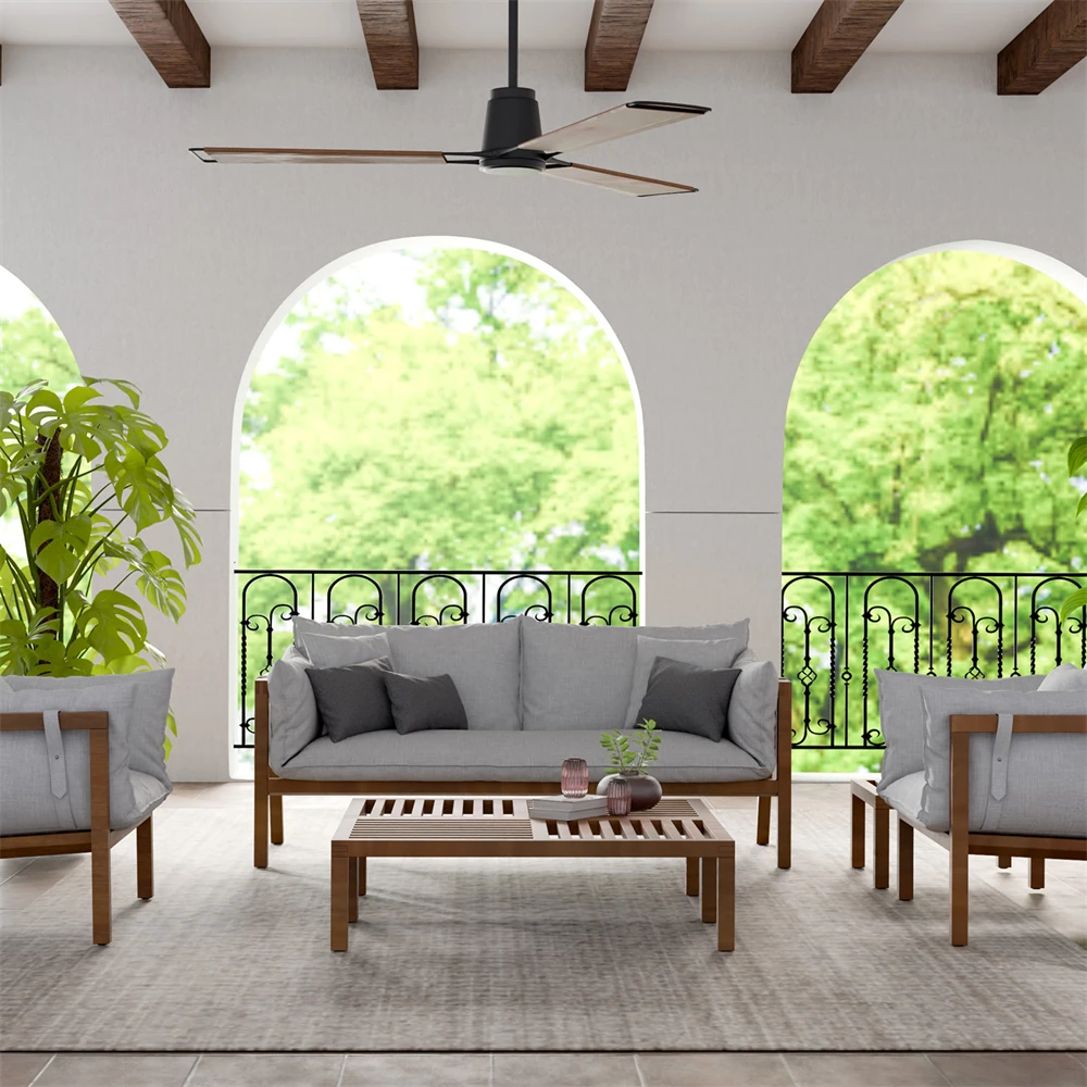 • Luna Coastal Natural Oak Blades White Iron Ceiling Fan - 56"|Kathy Kuo Home