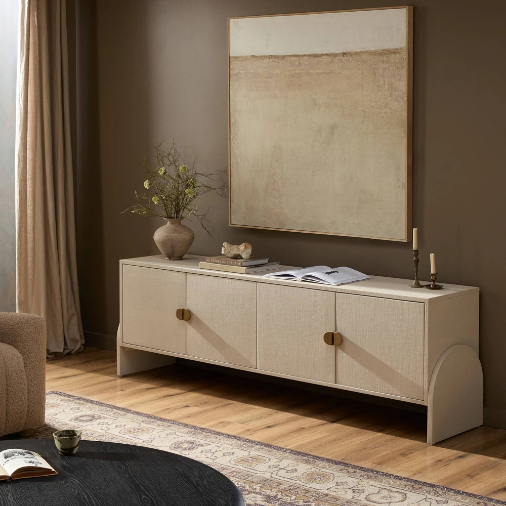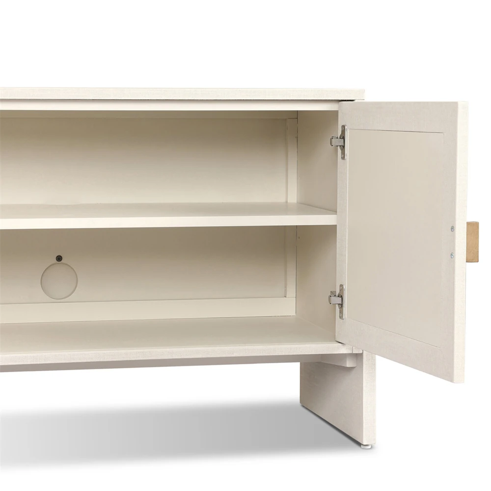 Maya Modern Classic Cream Painted Linen Media Cabinet - 84"