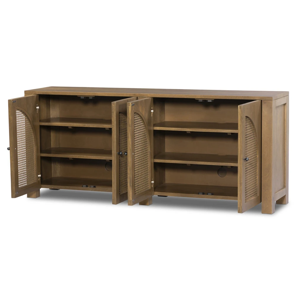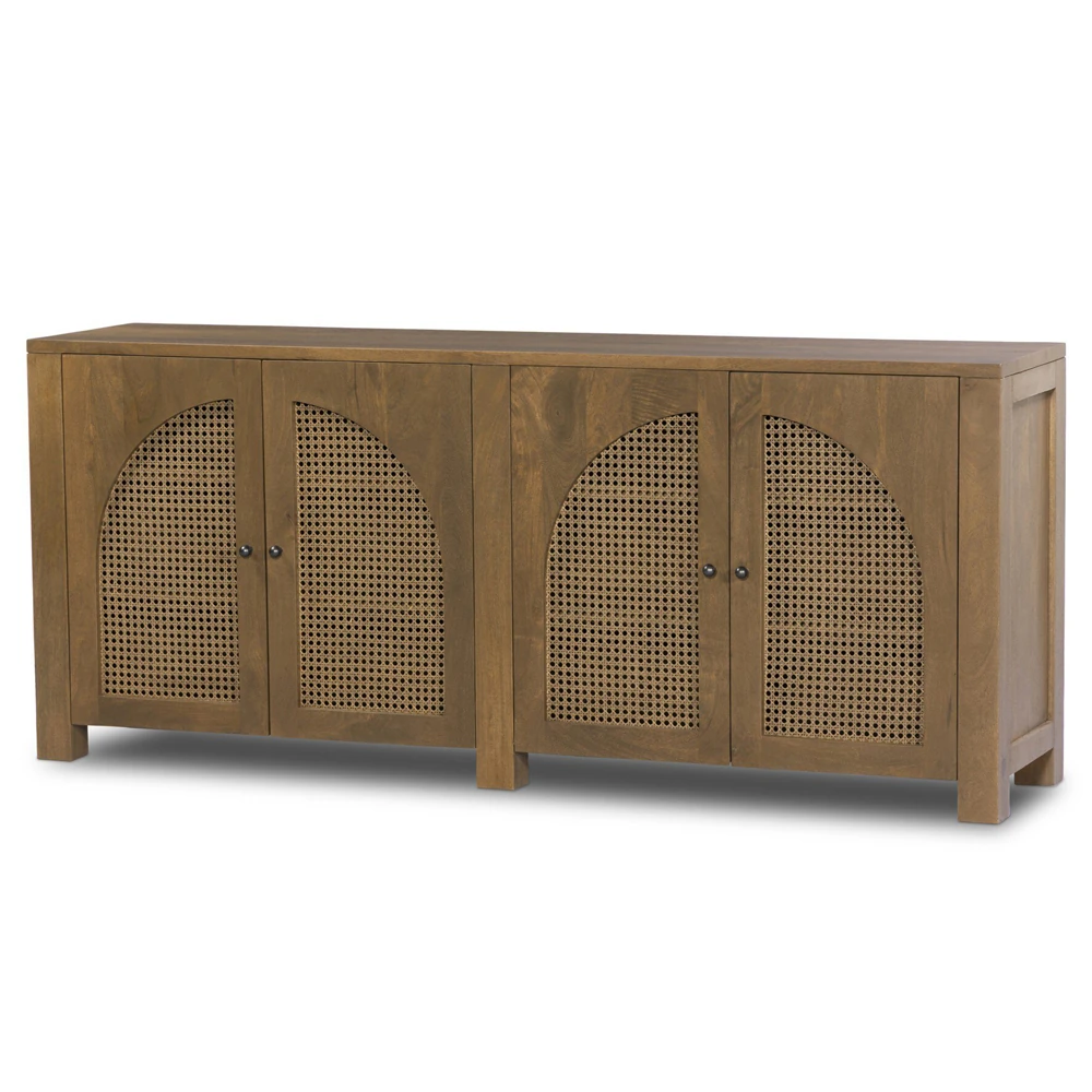 Kashton Mid Century Modern Taupe Mango Wood Arched Cane Sideboard