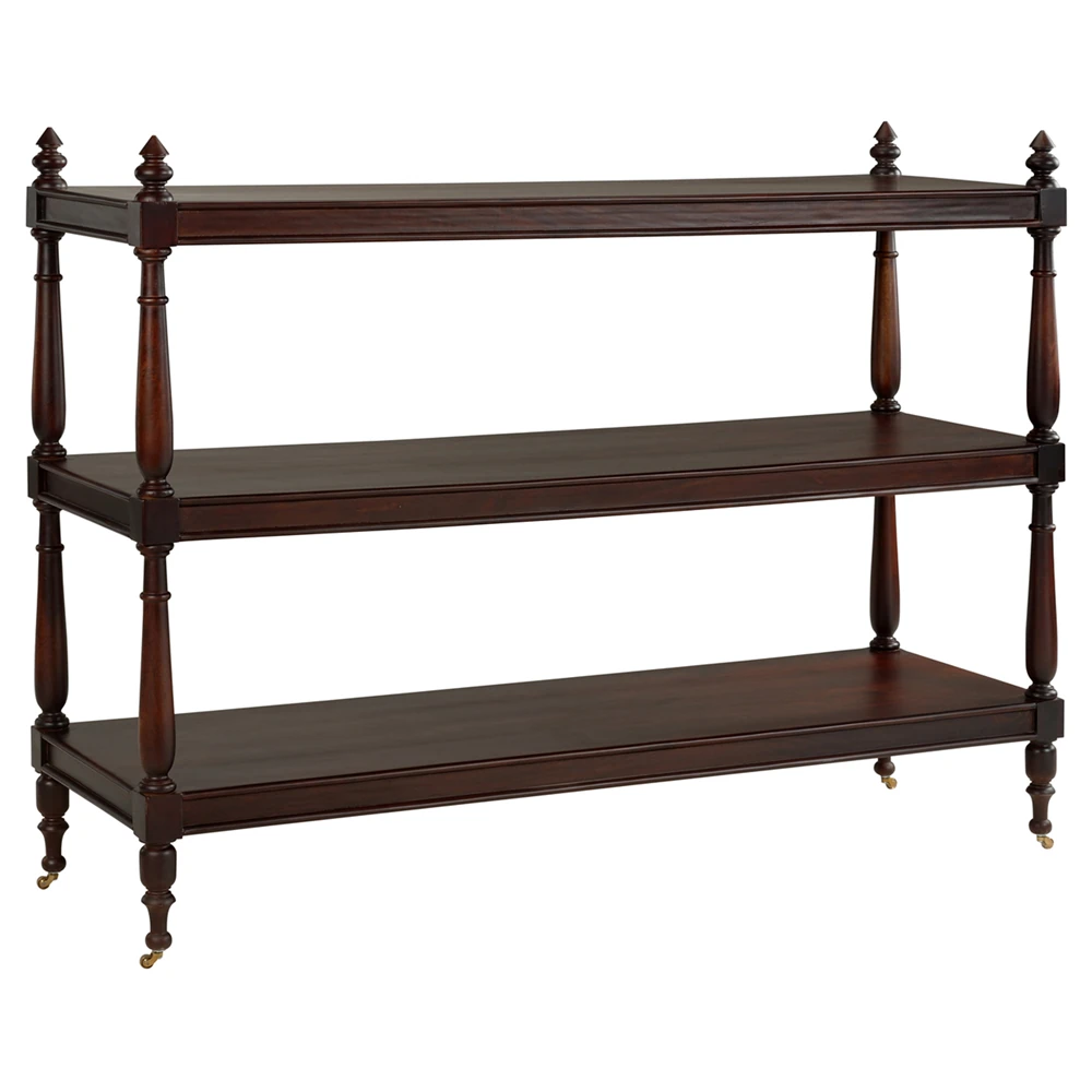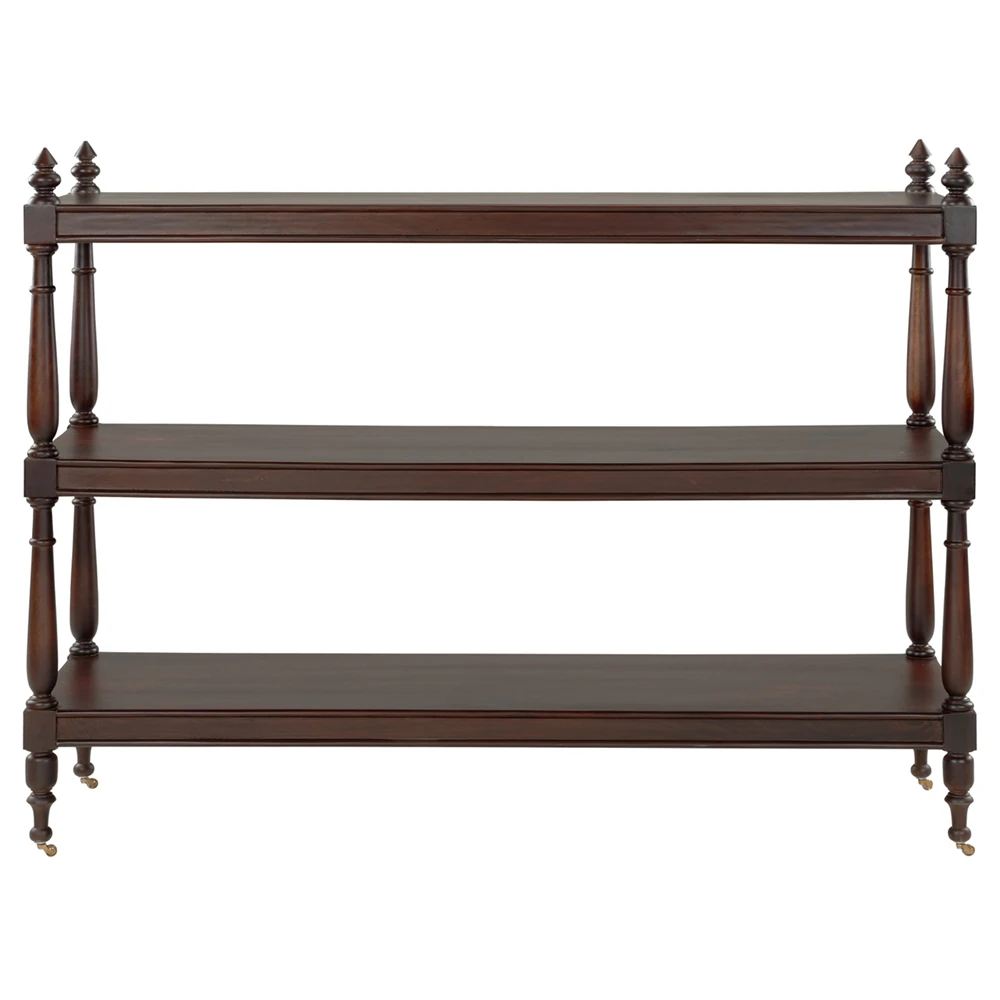 Achard French Country Dark Brown Mango Wood Caster Wide Bar Cart