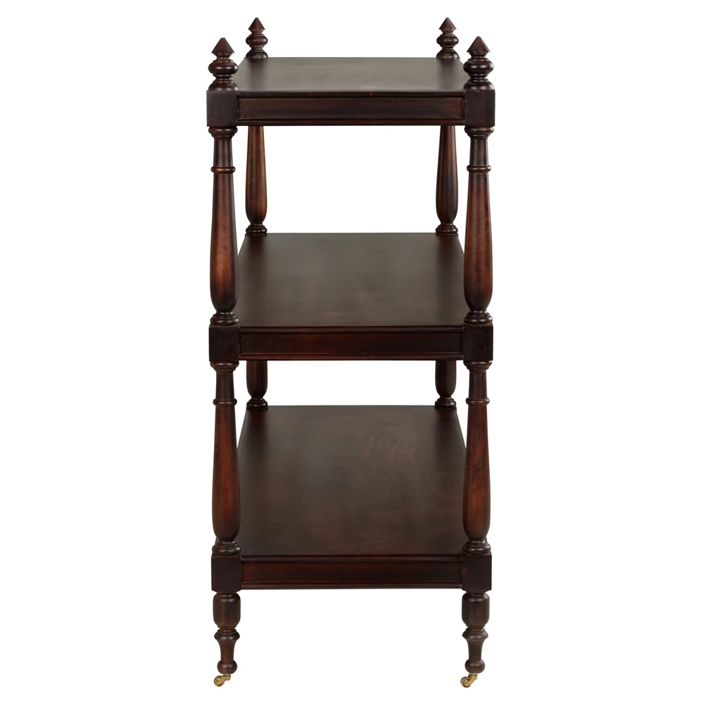 Achard French Country Dark Brown Mango Wood Caster Bar Cart