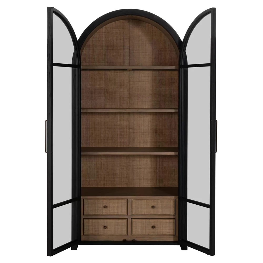 Elba Natural Rattan Wood Woven Arched China Cabinet