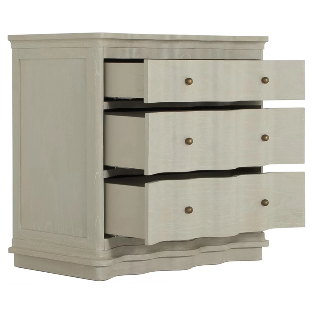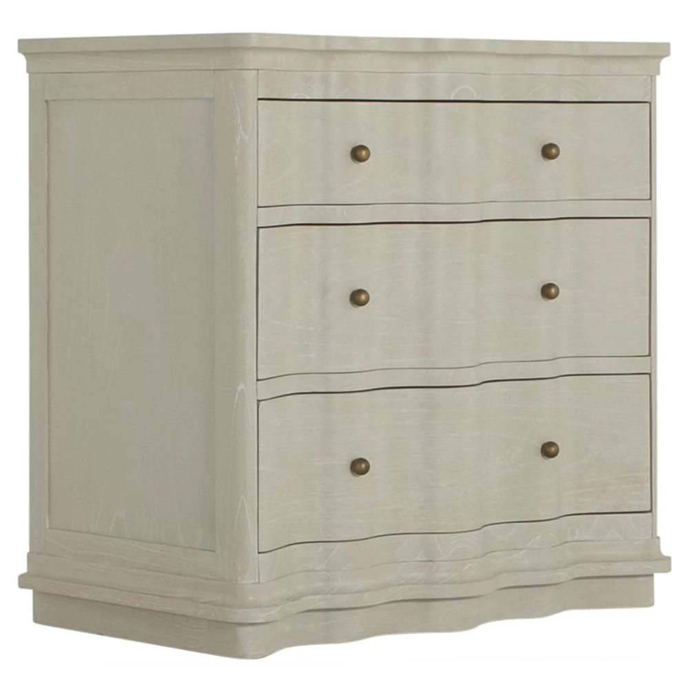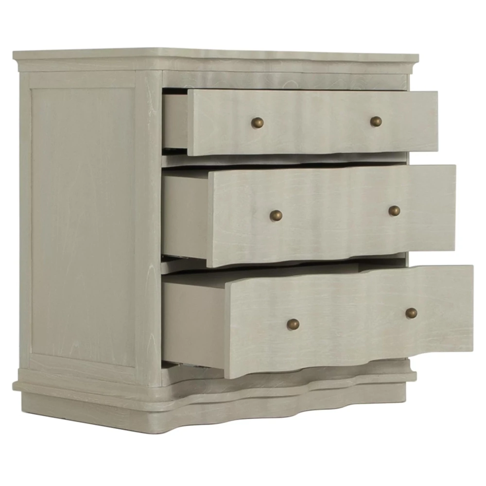 • Melany French Country Natural White Wash Mango Wood 3 Drawer Nightstand|Kathy Kuo Home