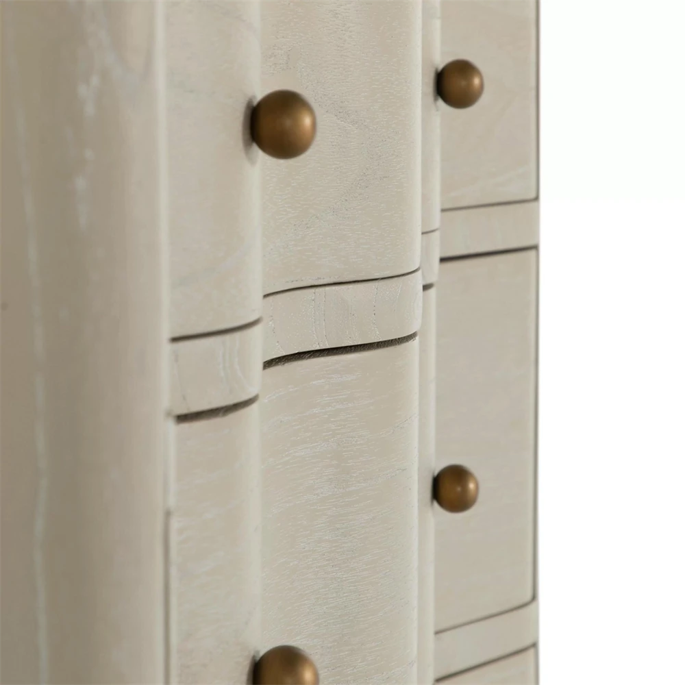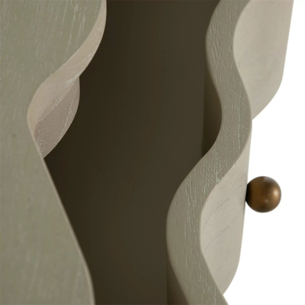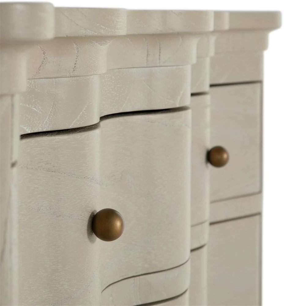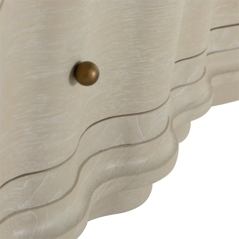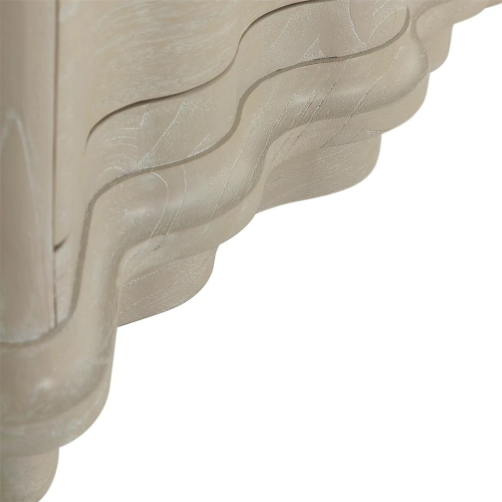 Meredith Updated Traditional Cerused White Wood Wavy Nightstand