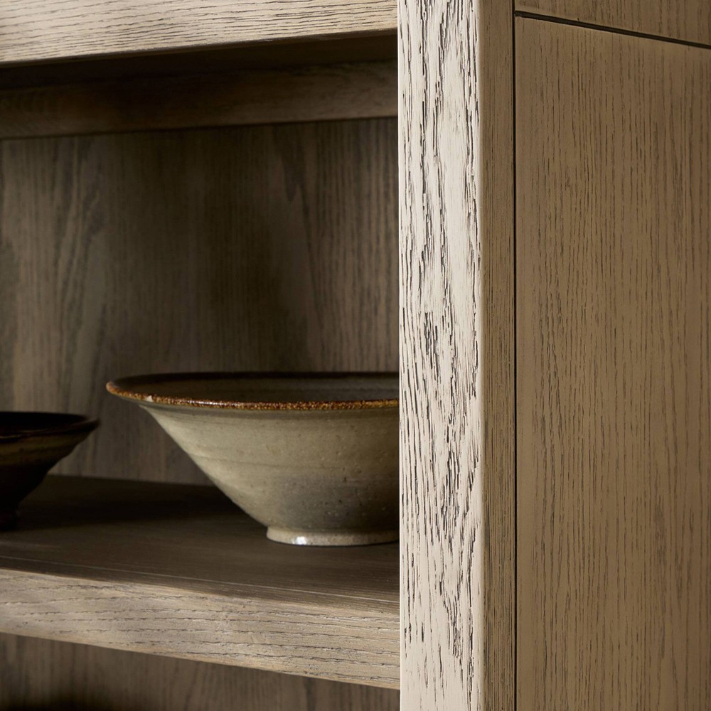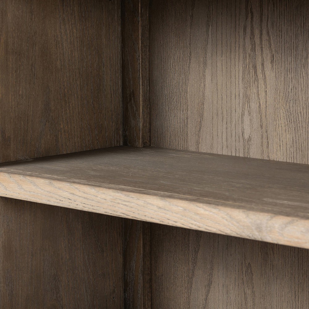 • Logen Coastal Beach Smoke Gray Oak Storage Bookcase|Kathy Kuo Home