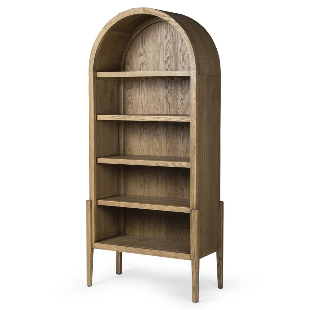 Ivan Updated Traditional Brown Oak Wood Arched Bookcase