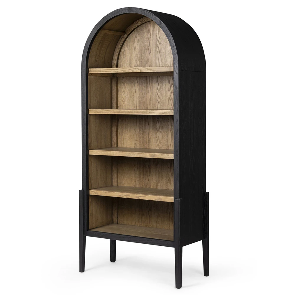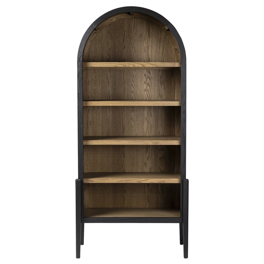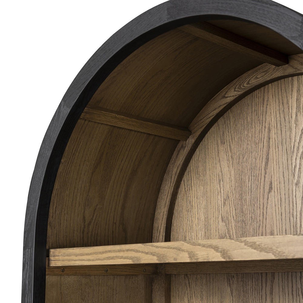 Ivan Updated Traditional Brown Black Oak Wood Arched Bookcase