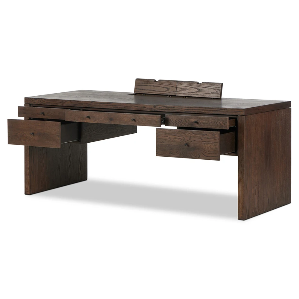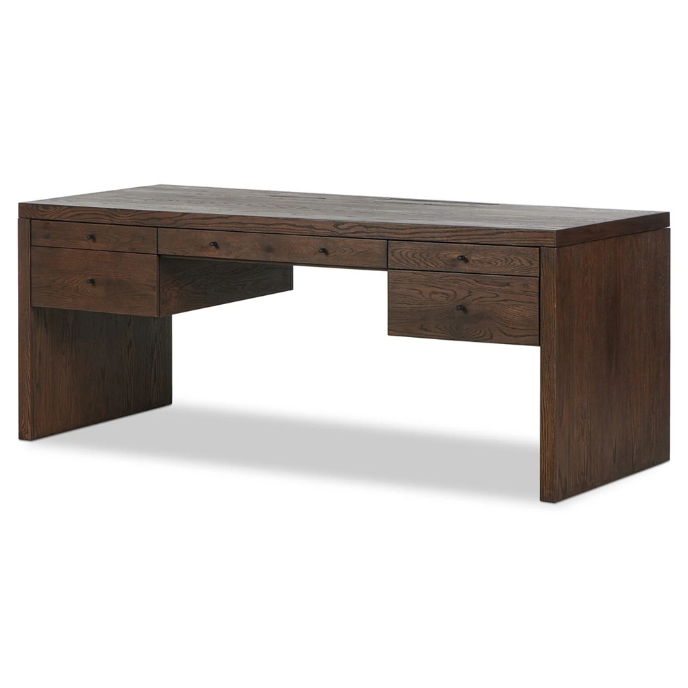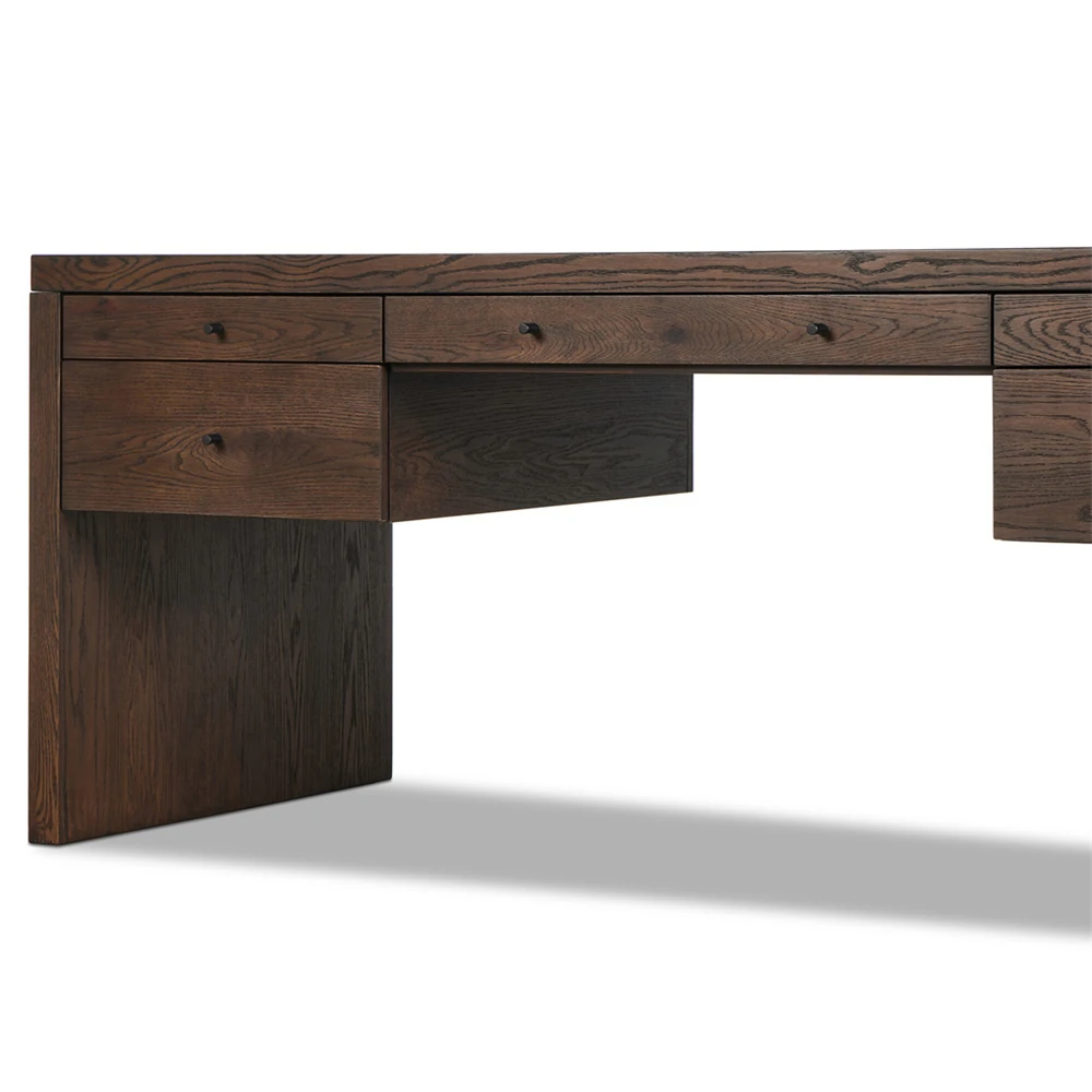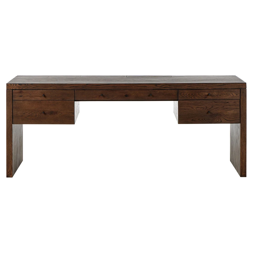 • Matthew Modern Classic Brown Oak Wood Desk|Kathy Kuo Home