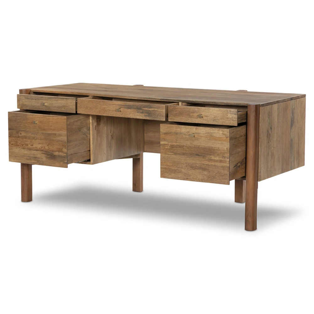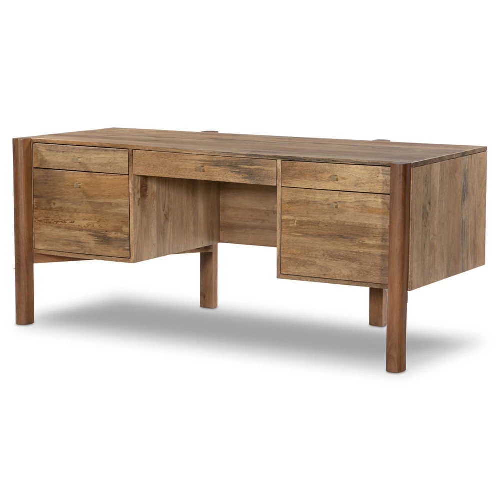 • Kortney Rustic Lodge Natural Brown Oak Wood Rotating Rectangular Desk|Kathy Kuo Home