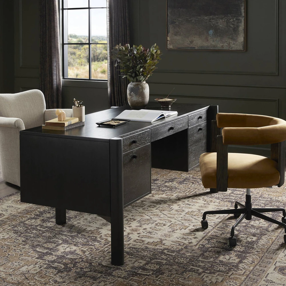 • Abner Updated Traditional Black Wood Desk|Kathy Kuo Home