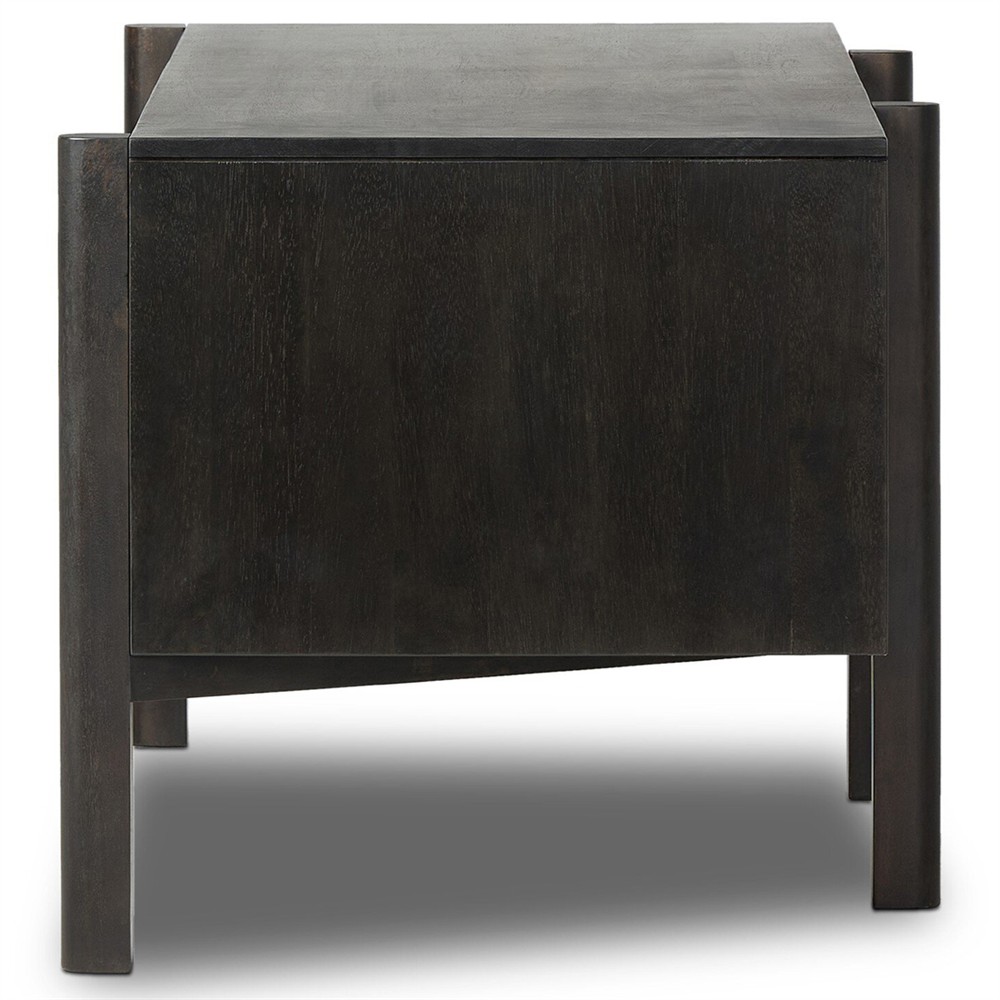 • Ronaldo Coastal Beach Black Oak Wood Woven Rattan 2 Drawer Desk|Kathy Kuo Home