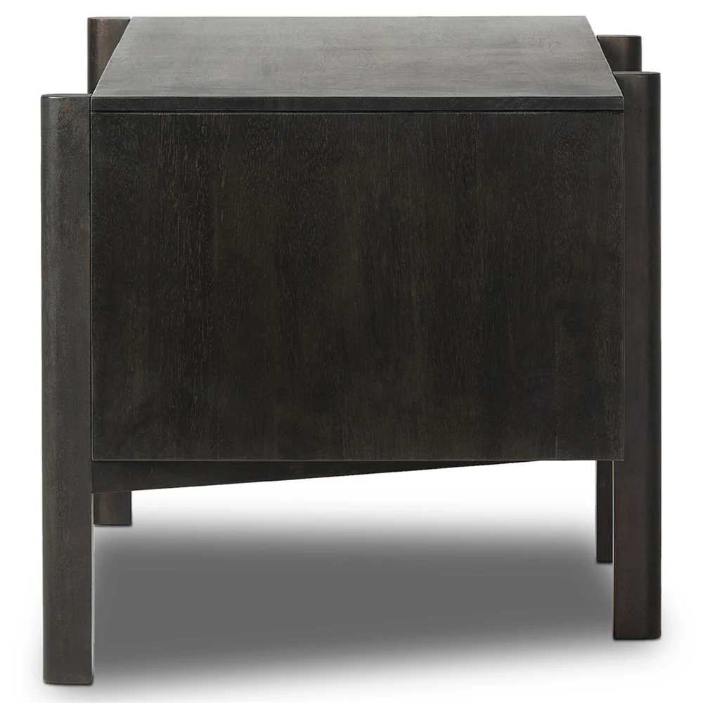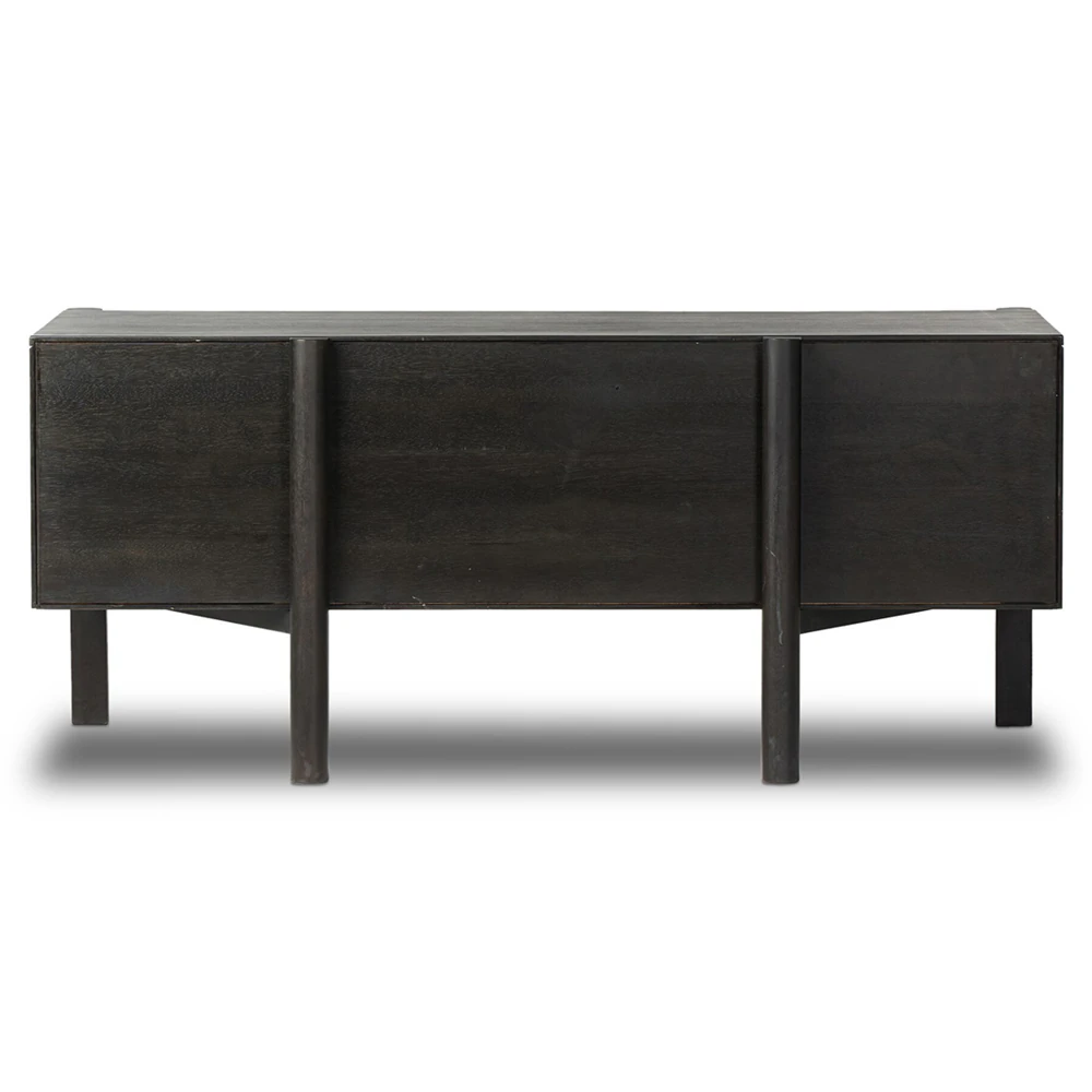 • Landon Modern Masculine Black Wood Silver Aluminum Media Cabinet|Kathy Kuo Home