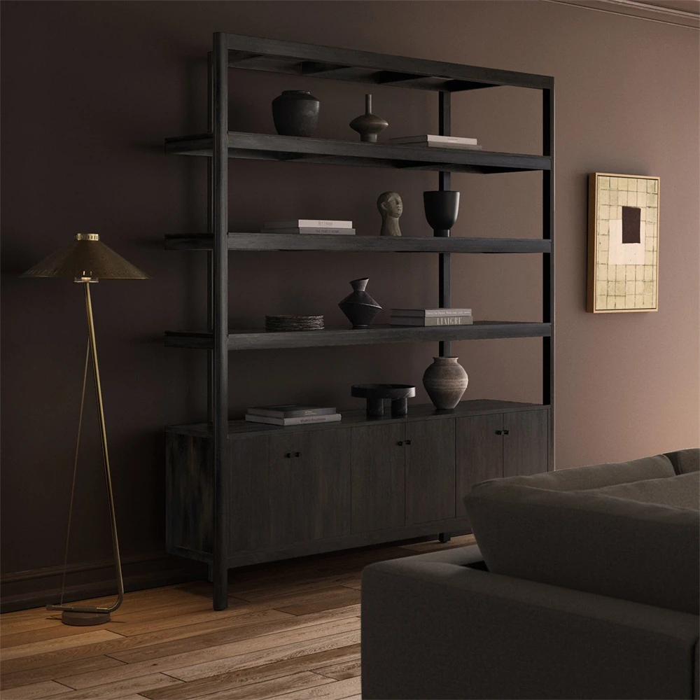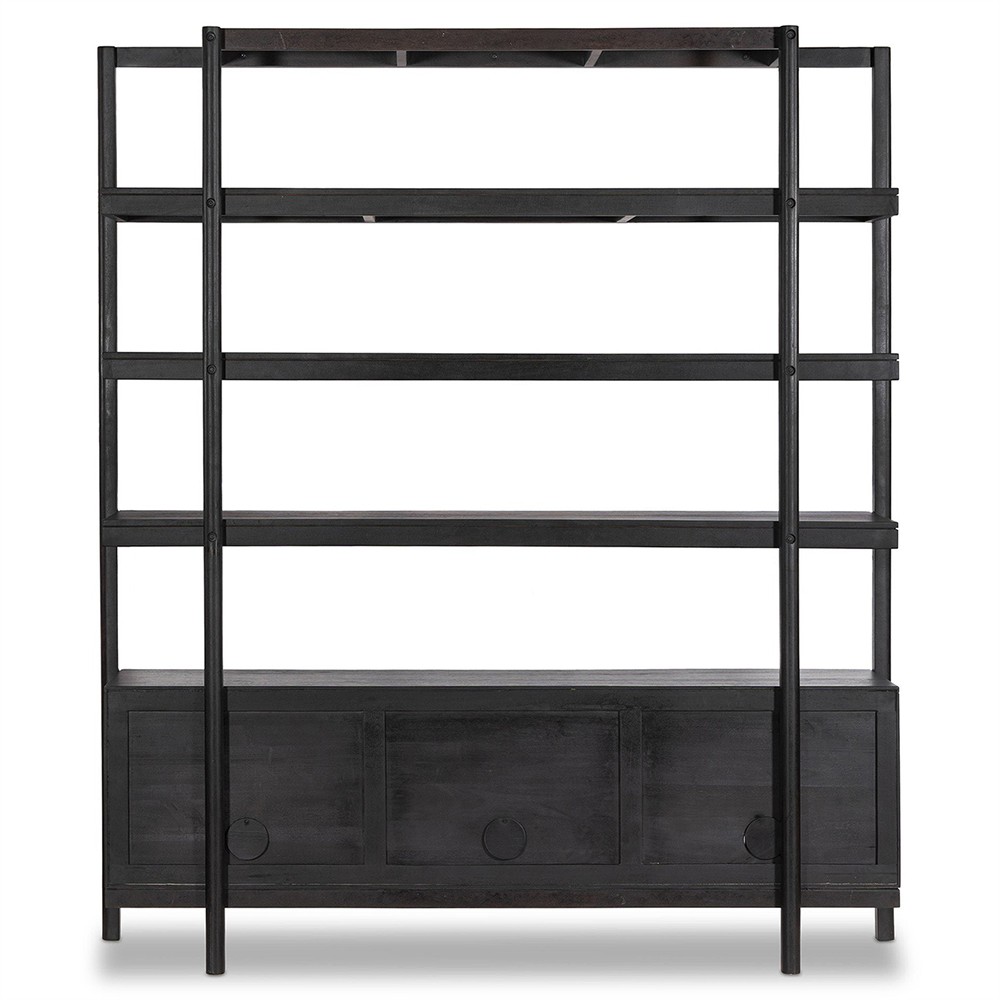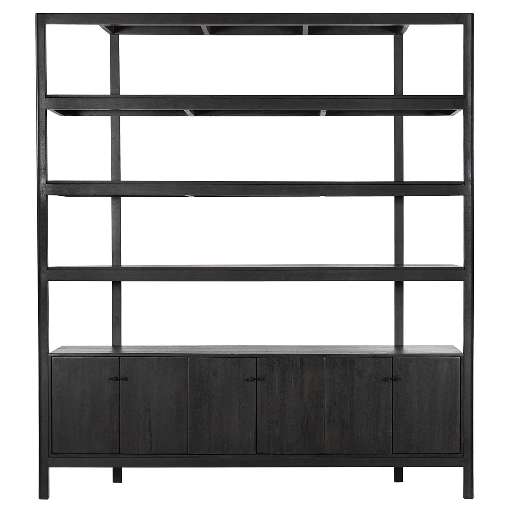 Rissa Modern Classic Black Acacia Wood Wide Bookcase