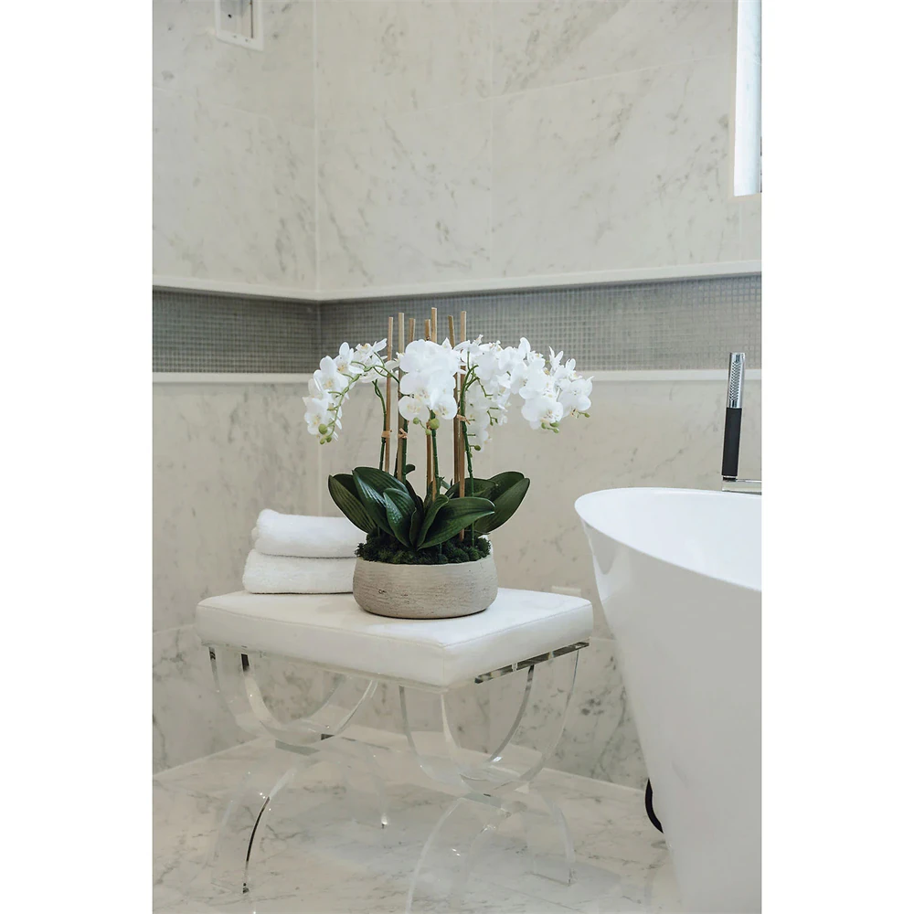 • Angel French Country White Phalaenopsis Orchid Bowl Drop In Faux Floral|Kathy Kuo Home