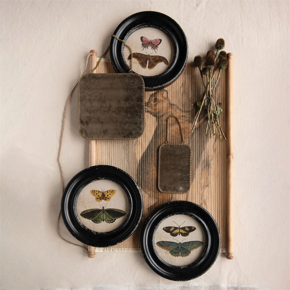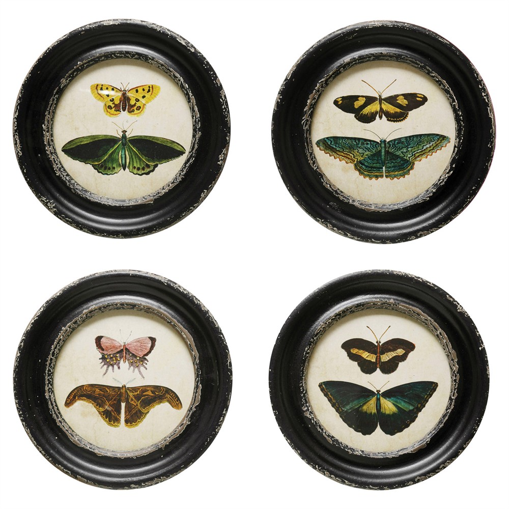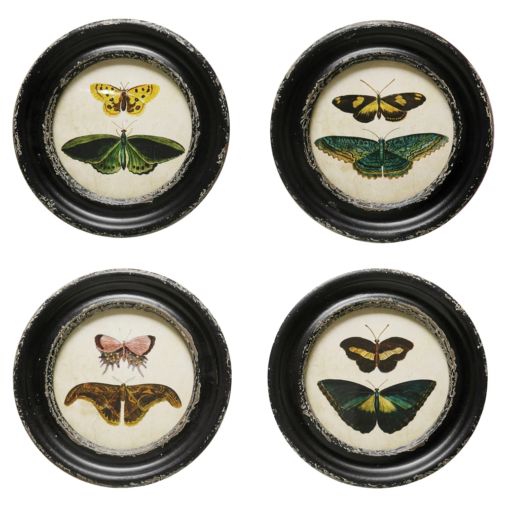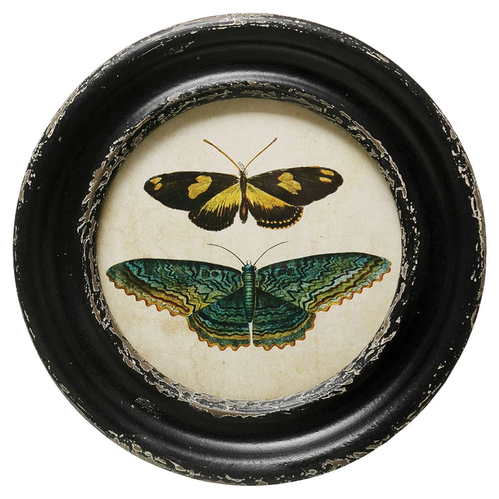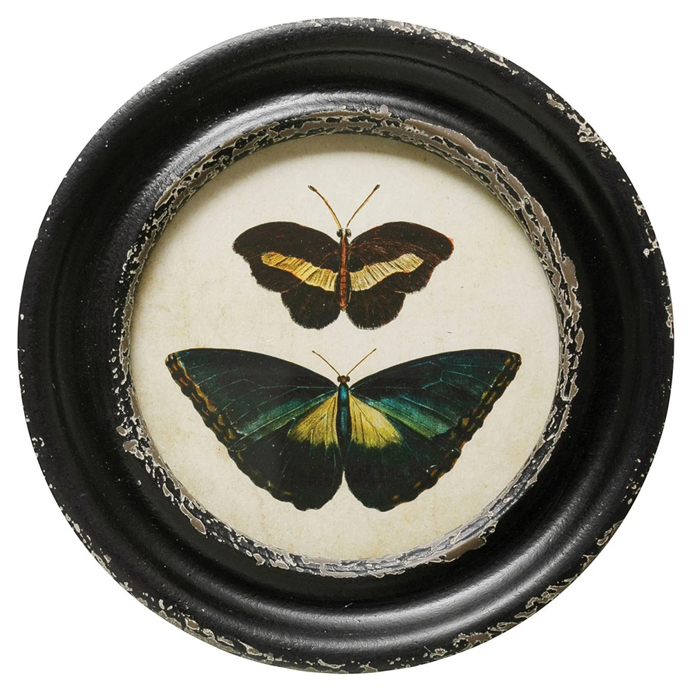 Verity Traditional Green Butterfly Black Frame Multipanel Illustration - 10x10