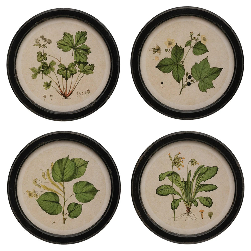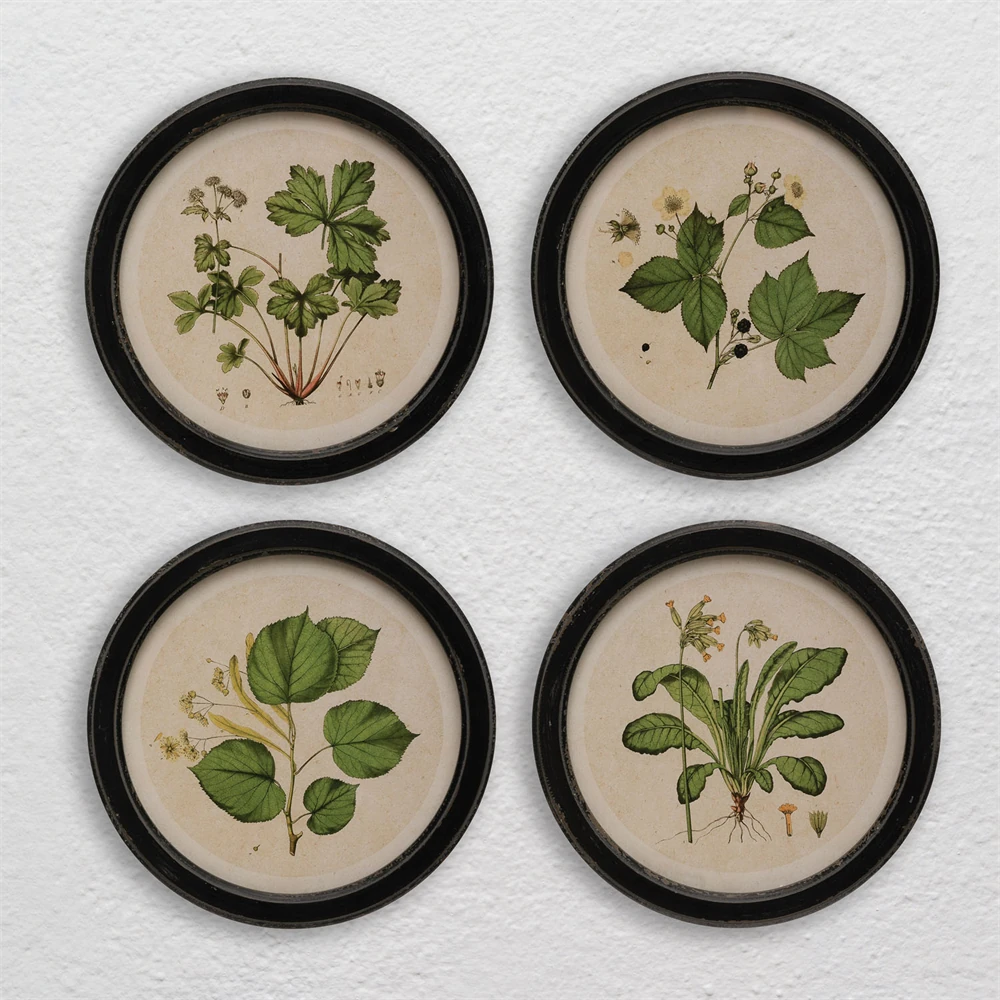 Anthea Traditional Green Botanical Black Frame Multipanel Illustration - 14x14