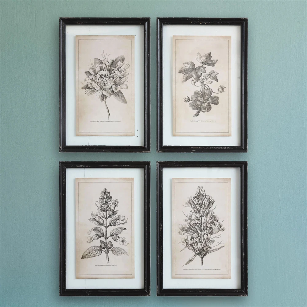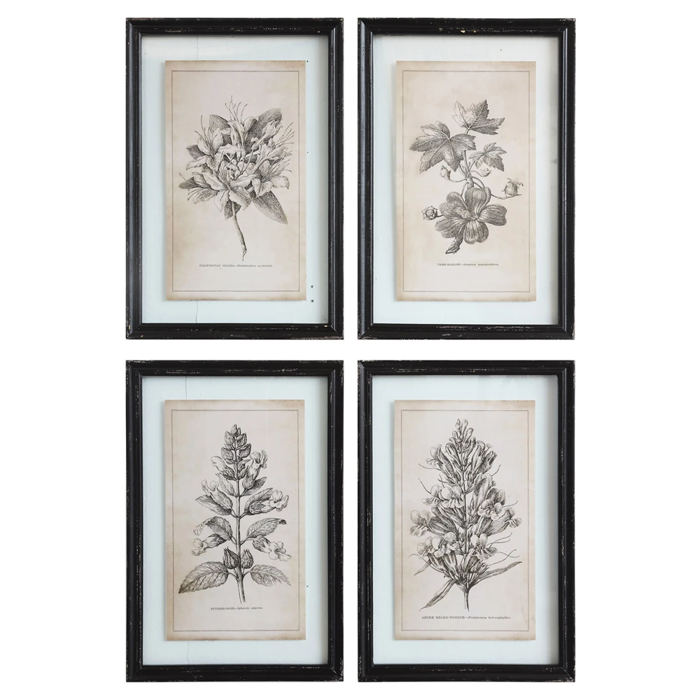 Cressida Traditional Grey Floral Black Frame Multipanel Illustration - 23x16