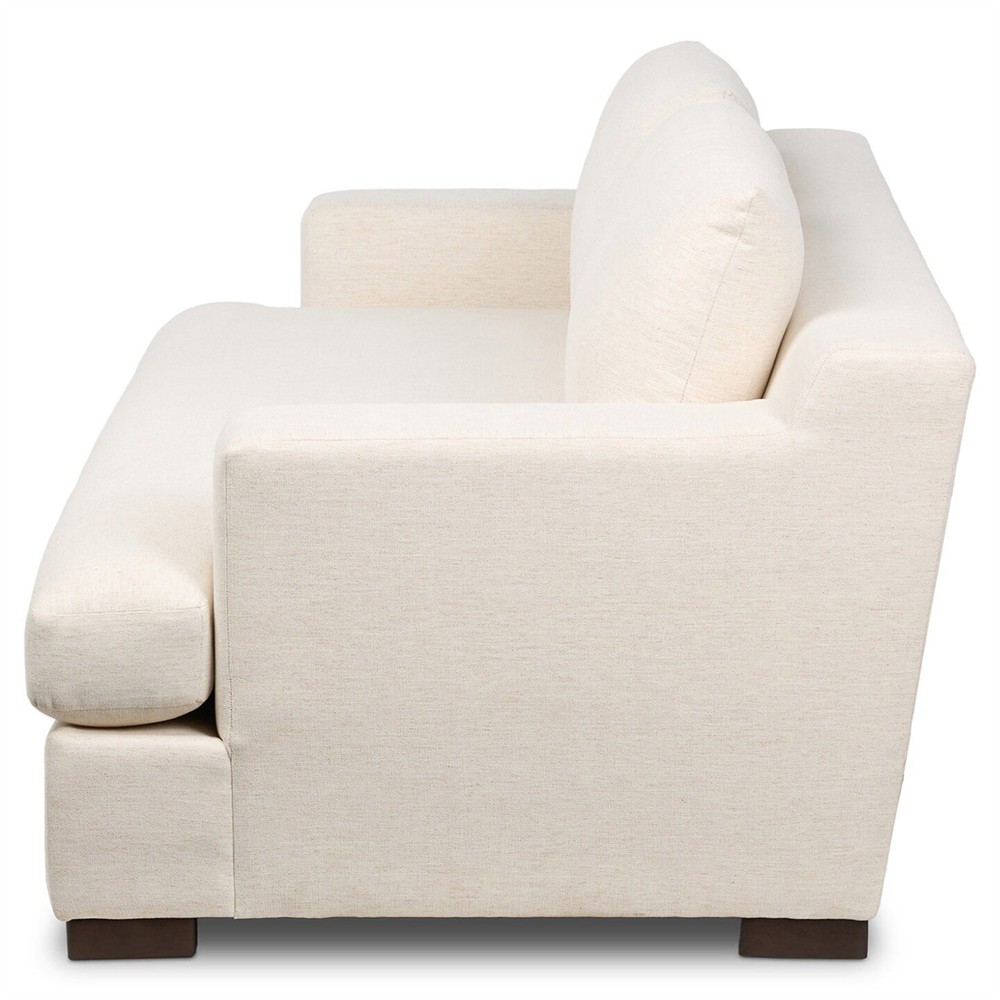 • Upholstered in beige performance fabric. Fabric content: 92% polyester and 8% flax/linen; Filling in back cushion: 100% polyester fiber; Filling in body: 90% polyurethane foam pad and 10% polyester fiber batting; Filling in seat: 95% polyurethane foam pad and 5% polyester fiber batting; Rub count: 50,000