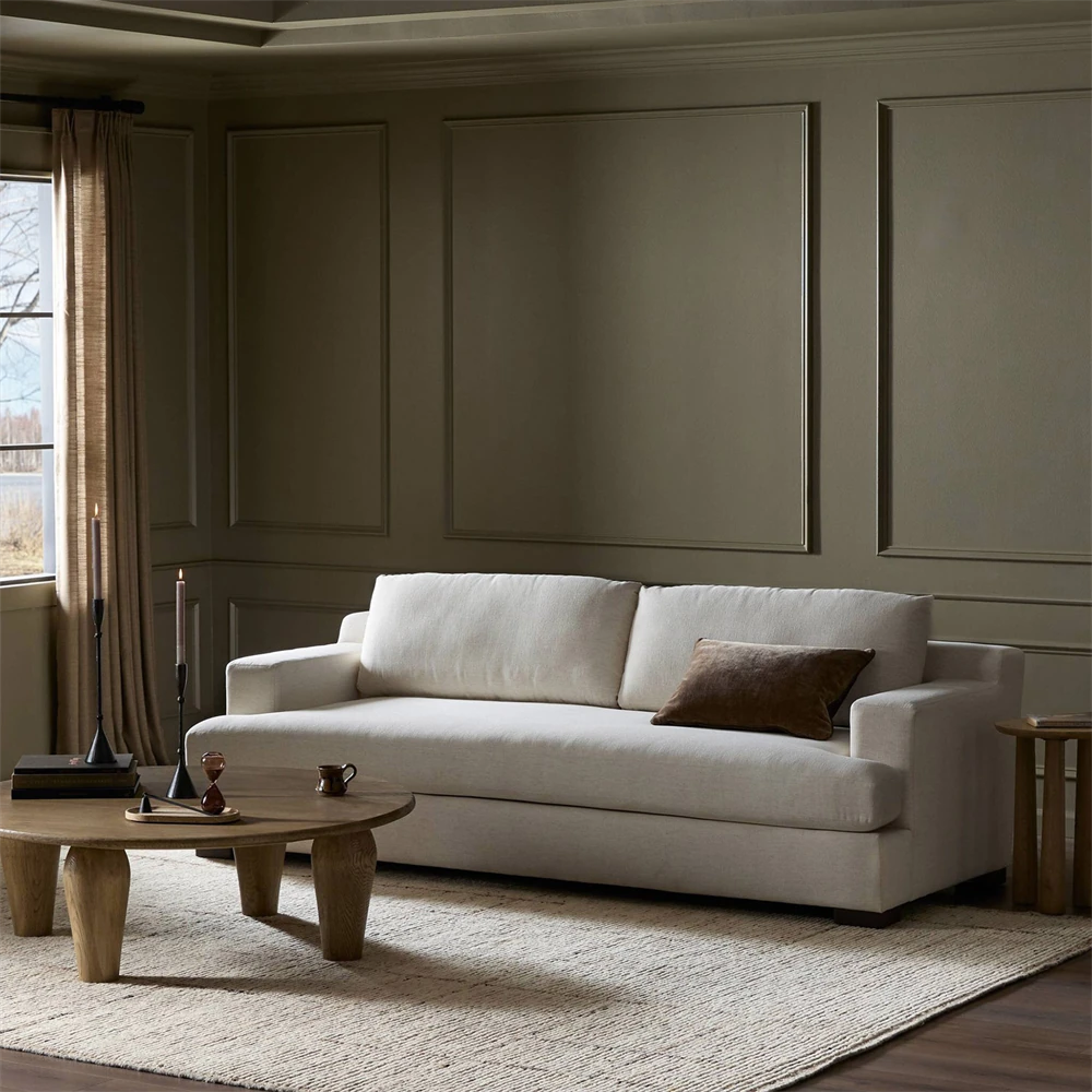 Hudson Modern Classic Heathered Ivory Crypton Sofa - 96"