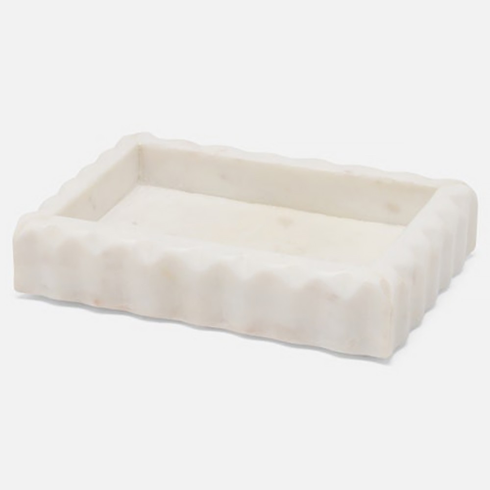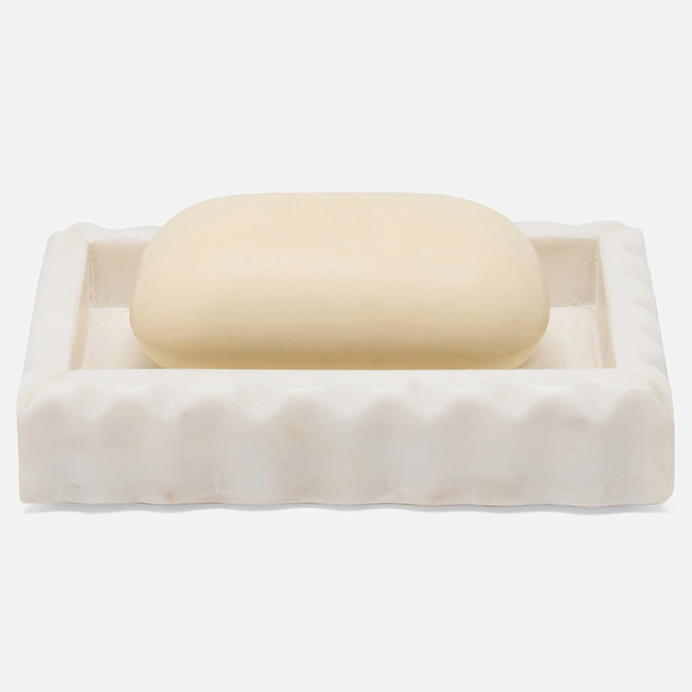 Pigeon and Poodle Proviso Modern Classic White Fluted Marble Soap Dish