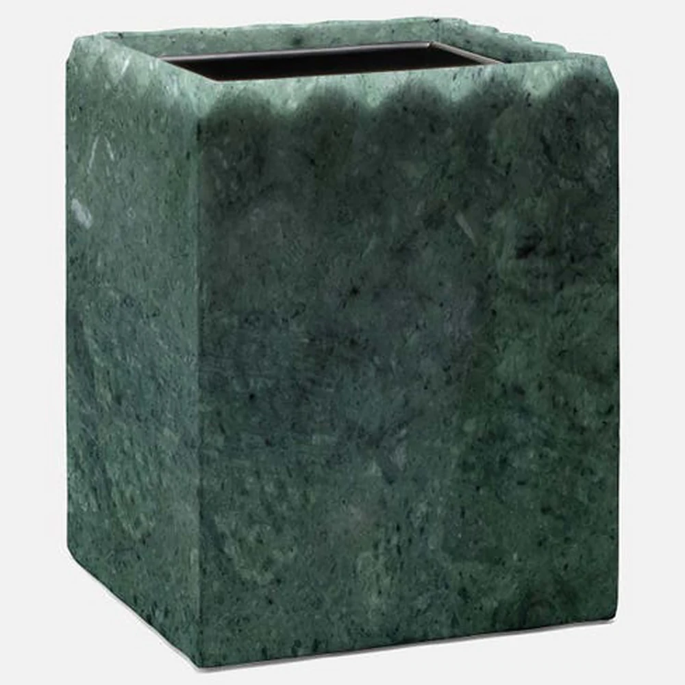 Pigeon and Poodle Proviso Modern Classic Jade Green Fluted Marble Square Waste Basket