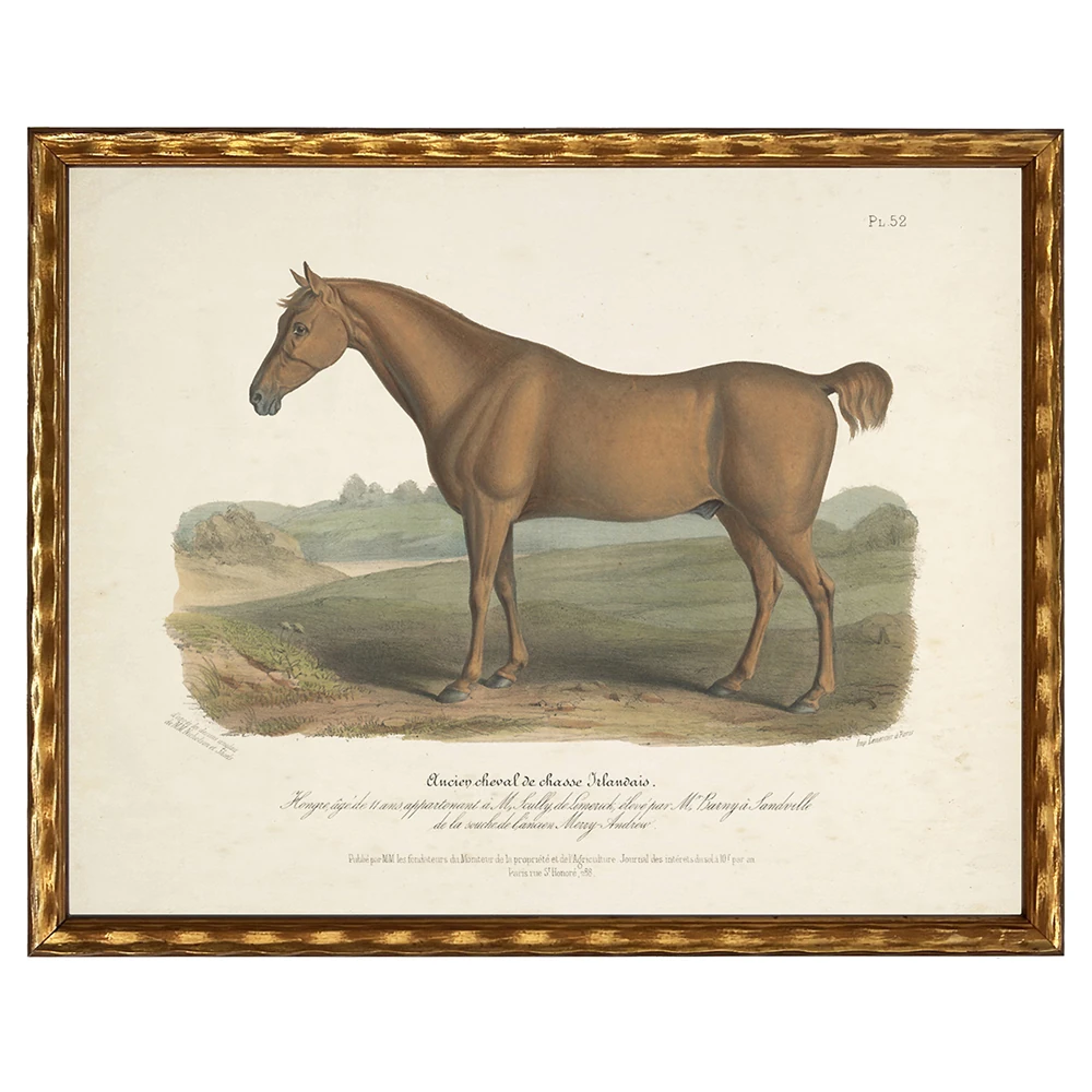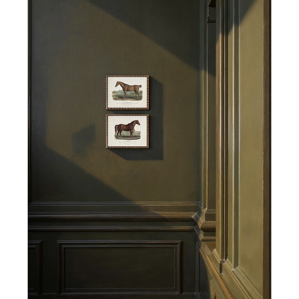 Evelaine Updated Traditional Brown Horse Gold Frame Illustration - 8x10