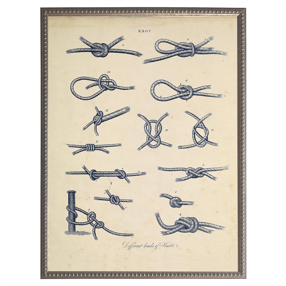 Iver Coastal Blue Knot Antique Silver Beaded Frame Illustration - 24x18