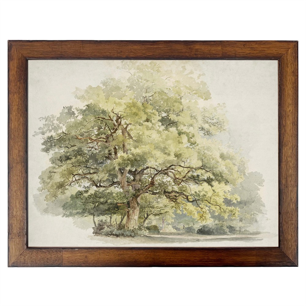 Lyra Traditional Green Tree Landscape Brown Walnut Frame Painting - 8x10