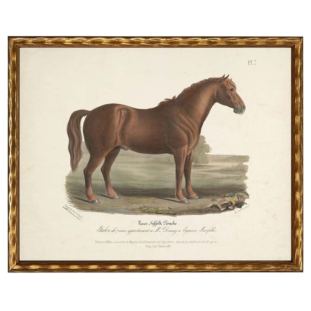 Merrick Updated Traditional Brown Horse Gold Frame Illustration - 8x10