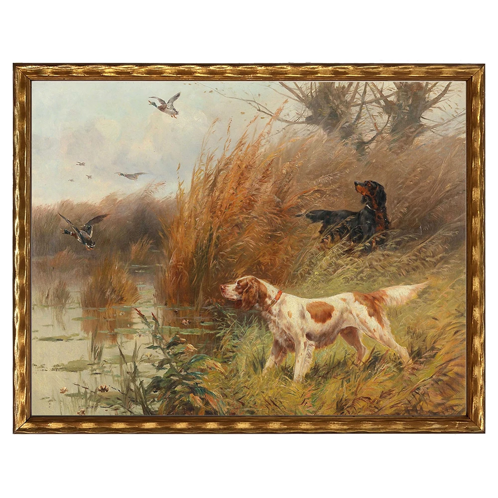 Brooks Traditional Brown Hunting Dog Gold Frame Painting - 12x16