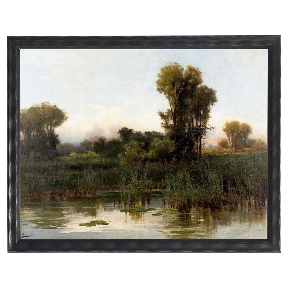 Hollis Traditional Green Lake Landscape Black Frame Painting - 12x16