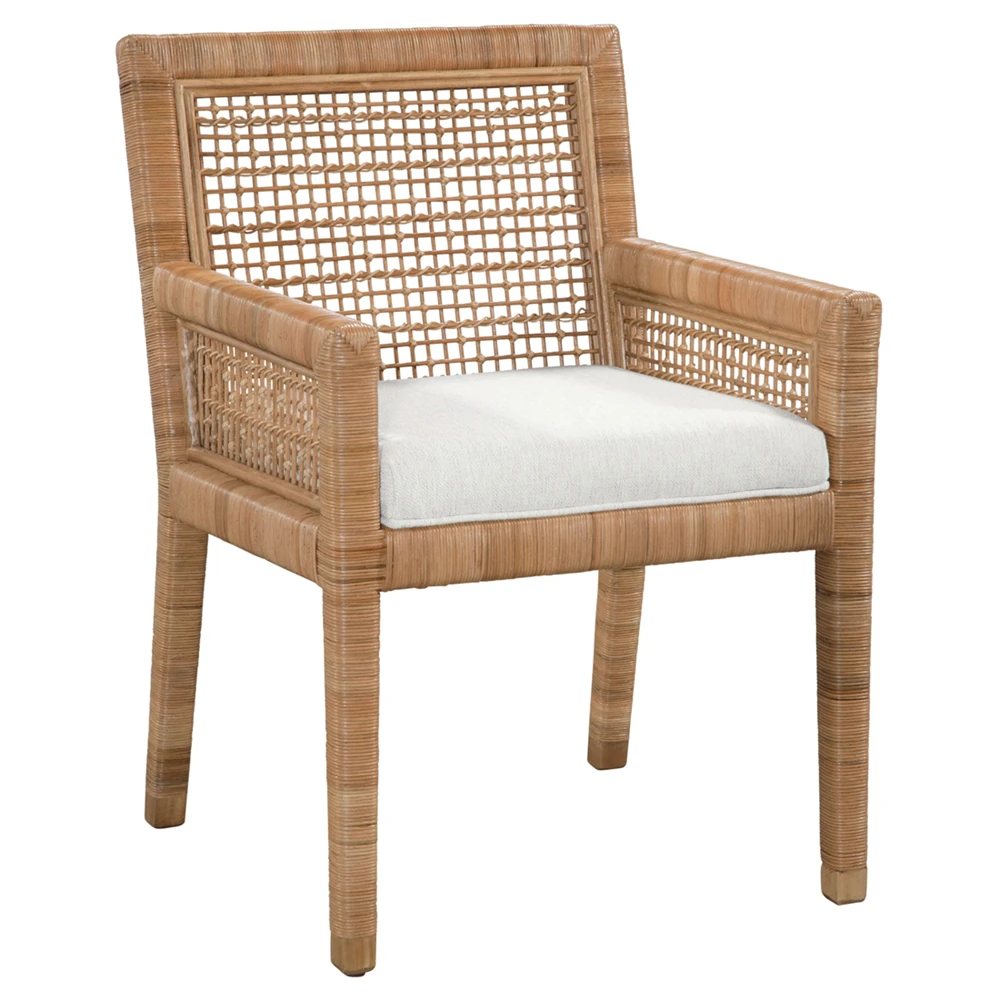 • Bella Coastal Beach Beige Performance Natural Rattan Dining Arm Chair|Kathy Kuo Home
