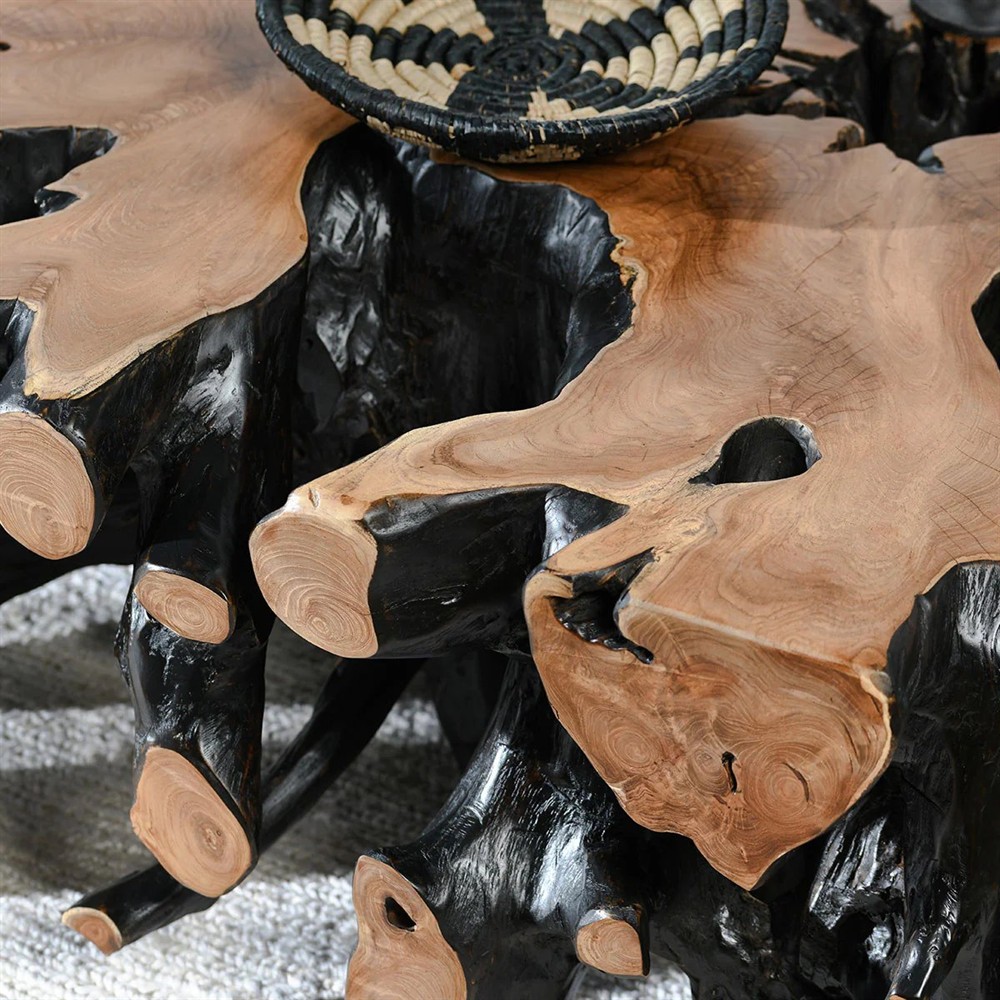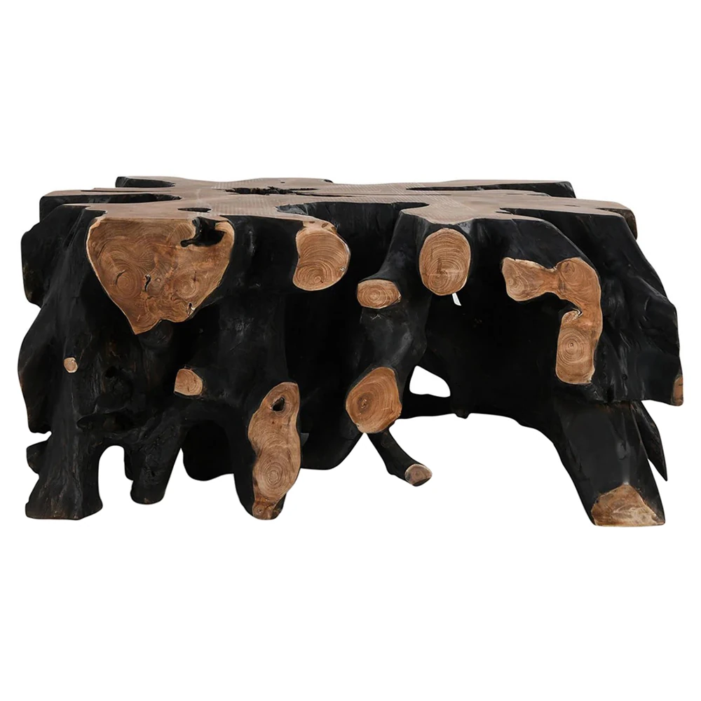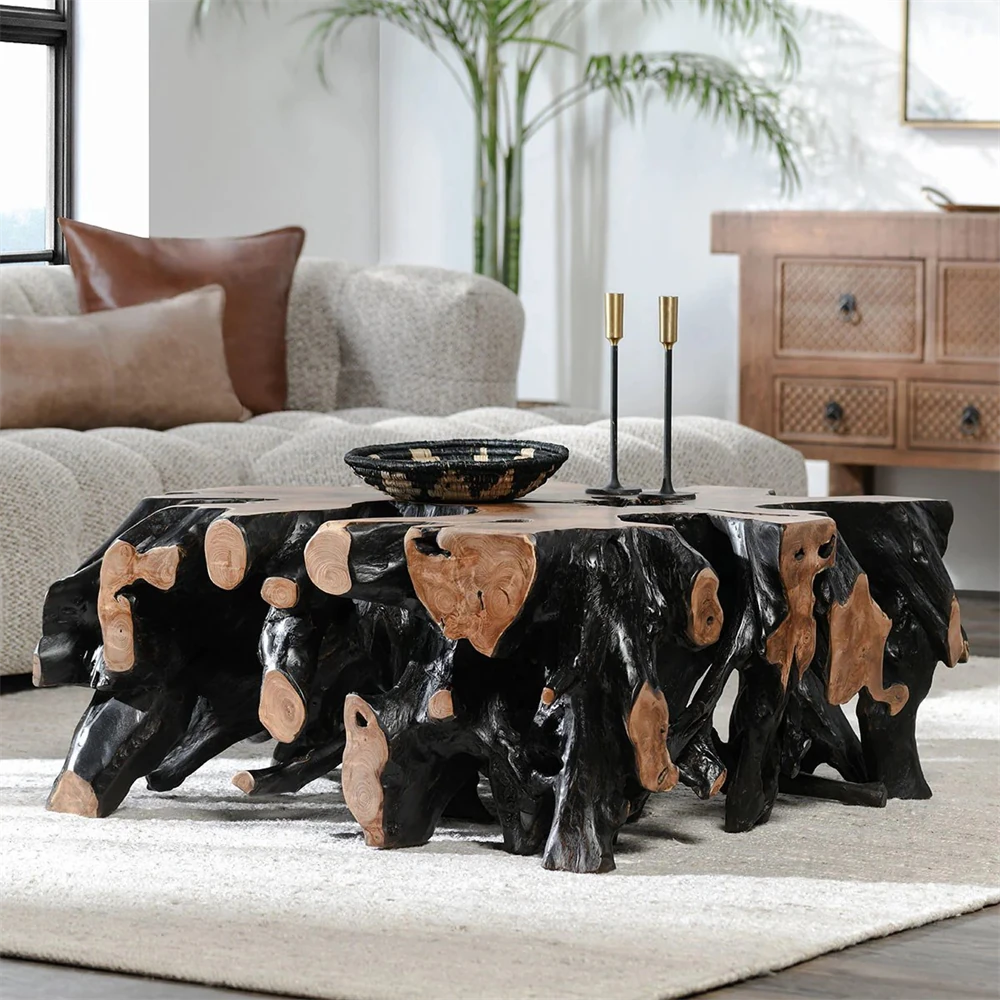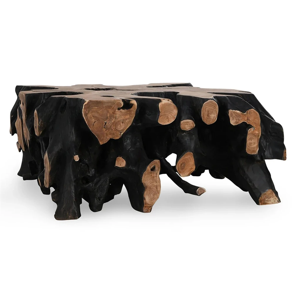 Prescy Coastal Beach Black Brown Teak Root Square Coffee Table