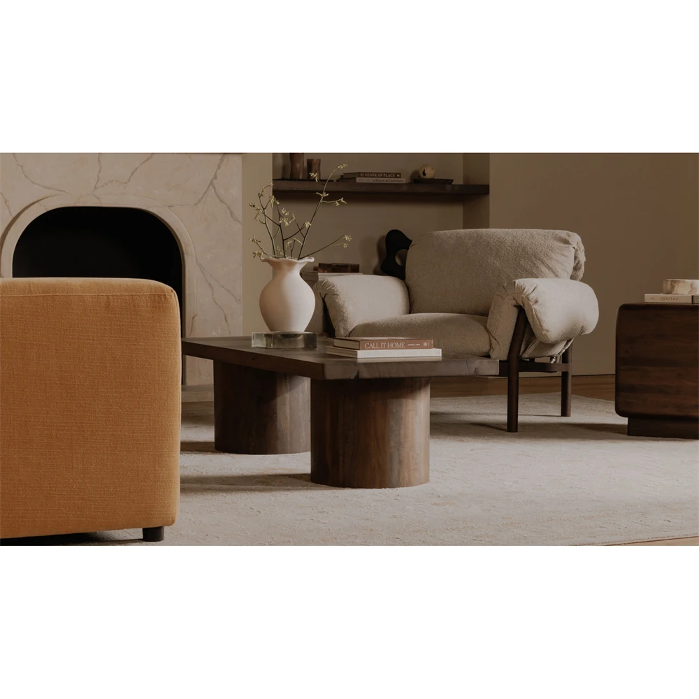 • Zyra Coastal Beach Brown Reclaimed Elm Wood Rectangular Coffee Table|Kathy Kuo Home