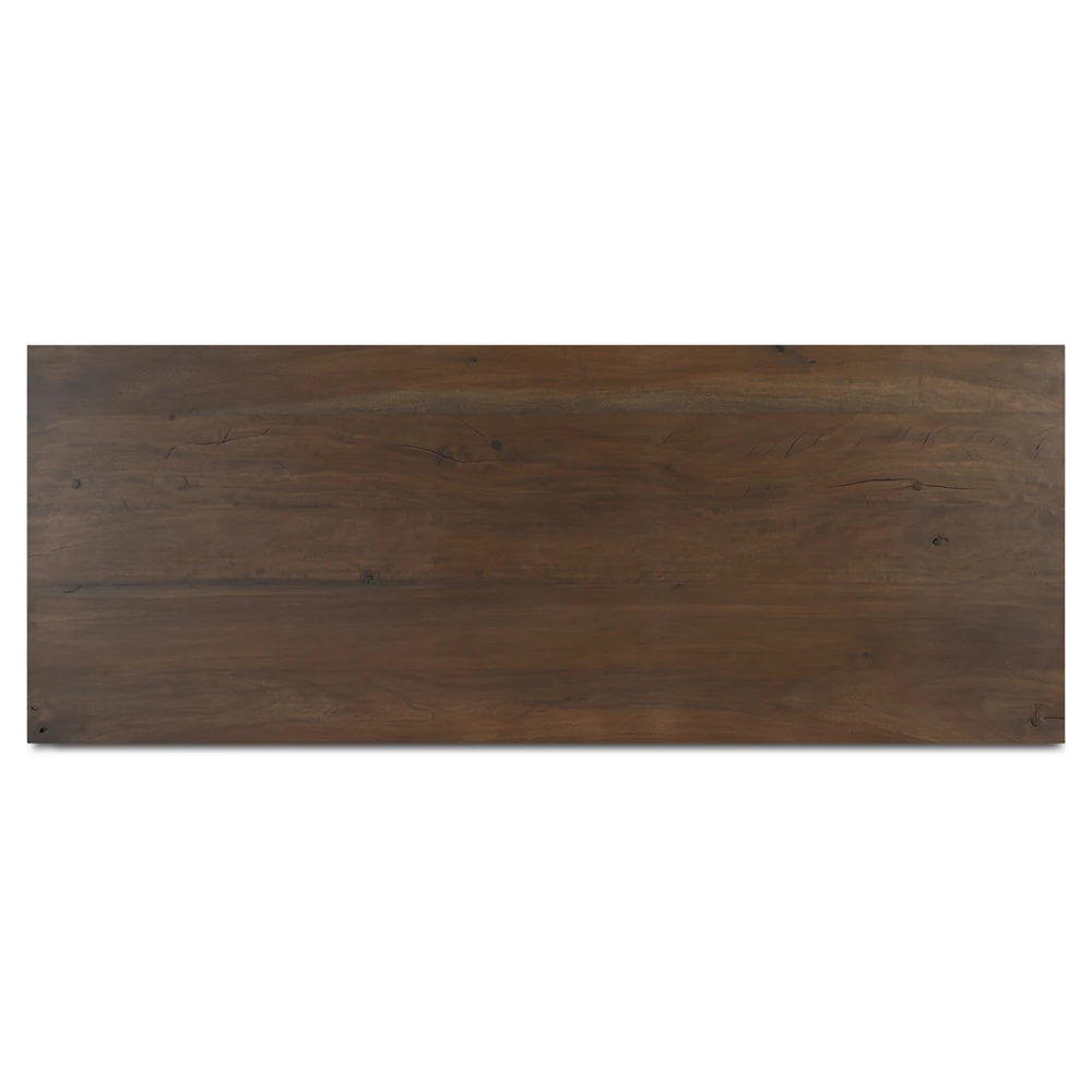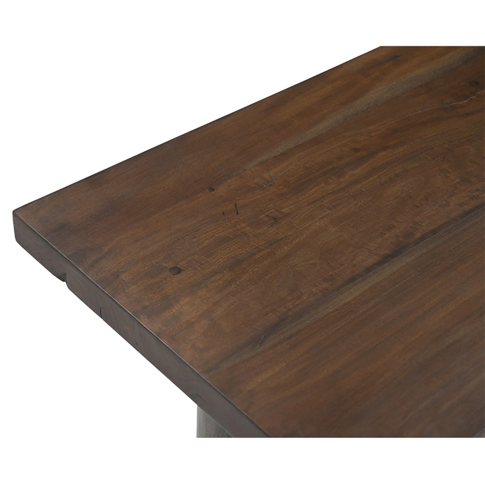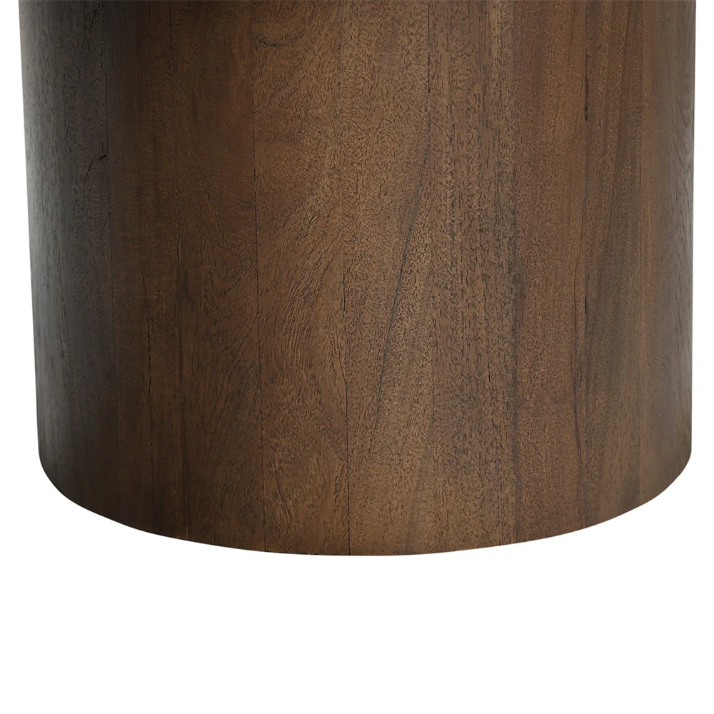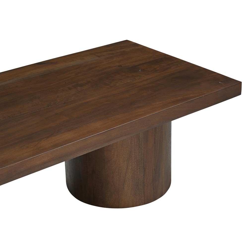 • Features a substantial 2-inch reclaimed neem wood top with straight edges, supported by cylindrical bases, with natural variations that make each piece unique